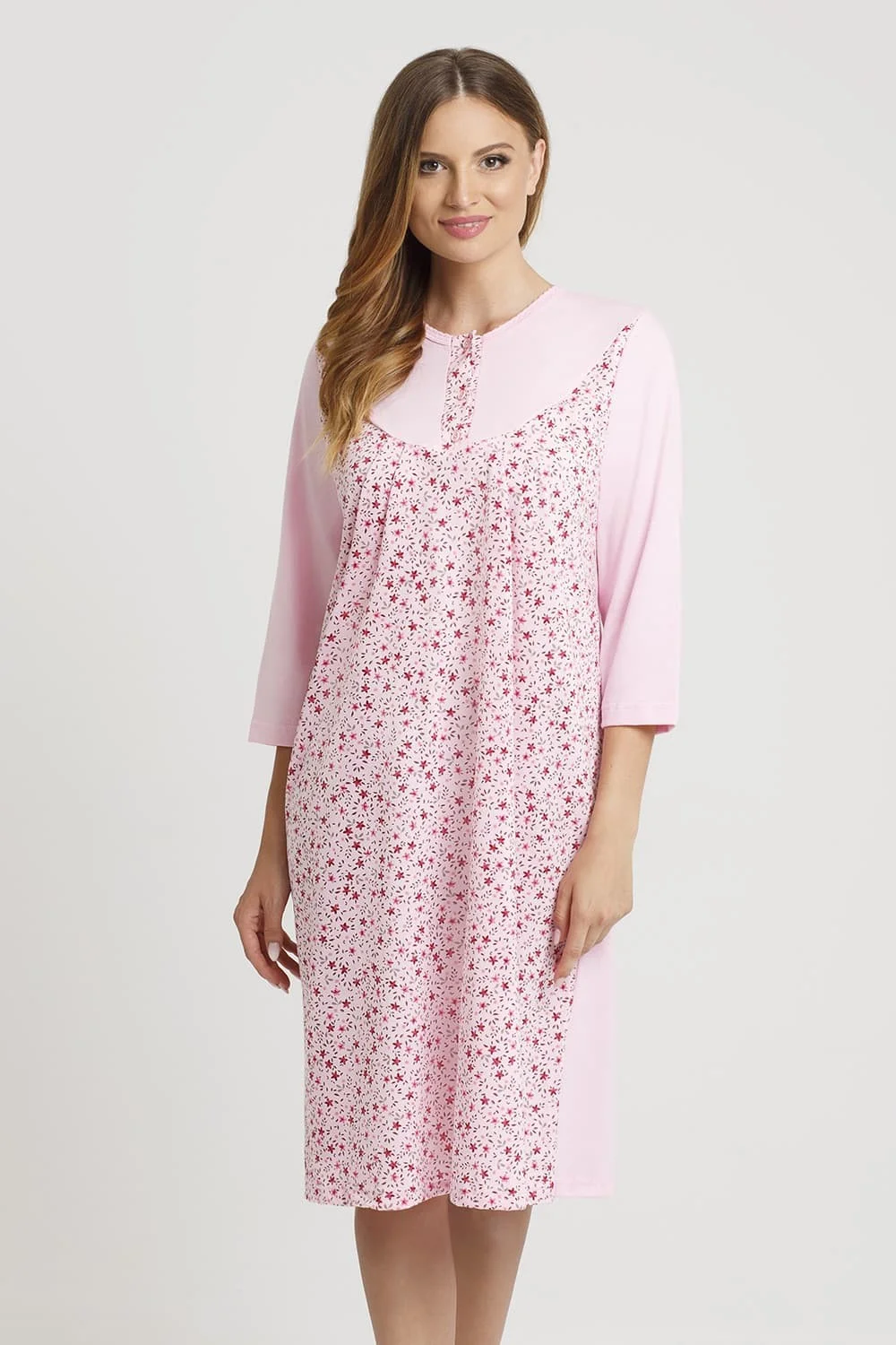 Dostępna w sklepie z bielizną damską modny-sklep.pl koszula Gucio nocna ocieplana ma długość za kolano i prosty rękaw o długości 3/4. W górnej części koszuli znajduje się rozcięcie zapięte na trzy guziczki. Miękki, bawełniany materiał oraz klasyczny, luźny i niekrępujący ruchów fason koszuli zapewniają wygodę podczas snu. Ocieplana koszula nocna Gucio wykonana jest z materiału o delikatnym, kwiatowym wzorze w wielu wersjach kolorystycznych. Prezentowany model dostępny jest w rozmiarach M, L, XL, XX.