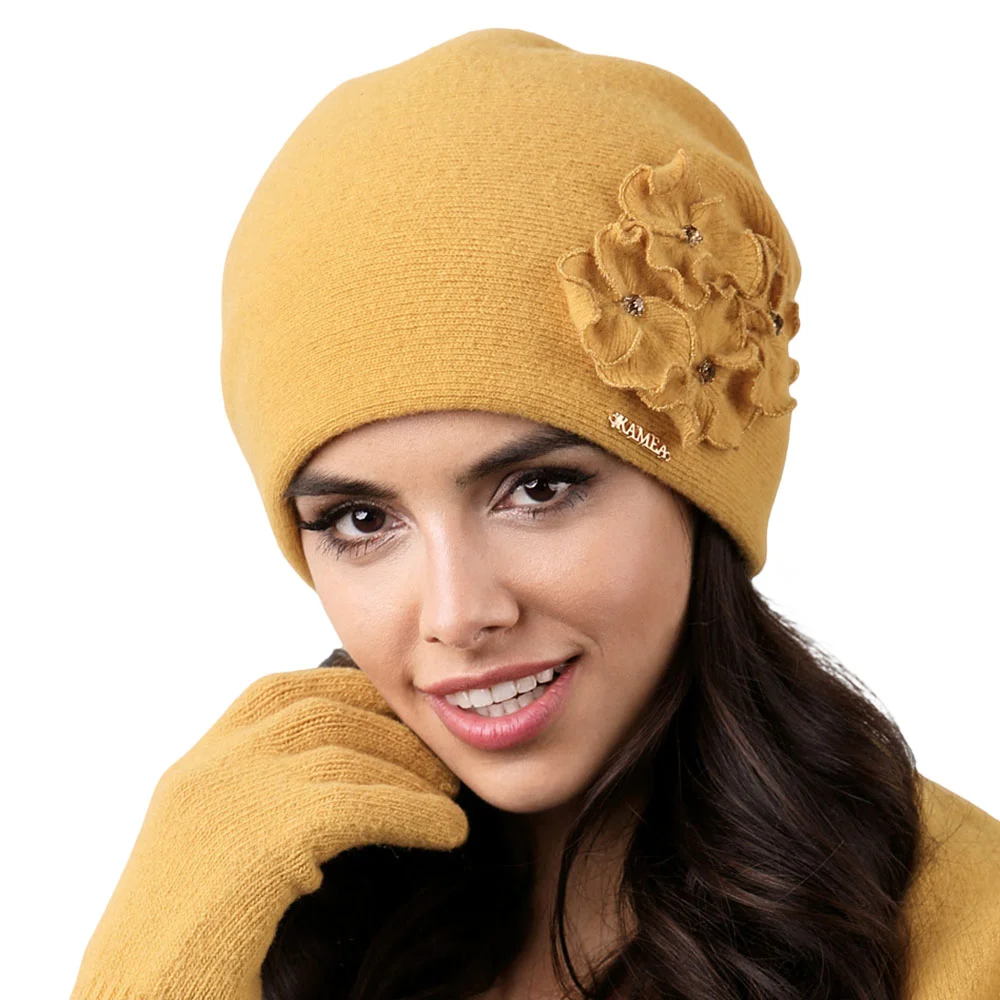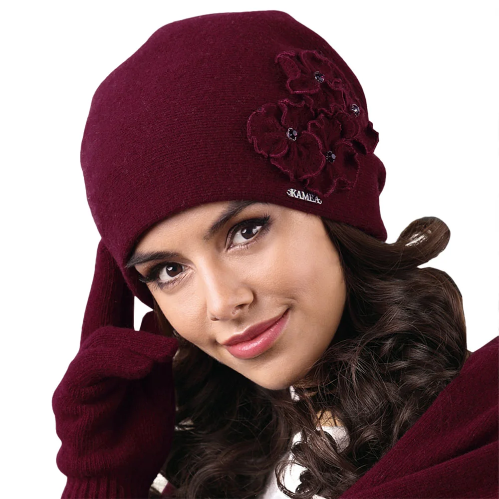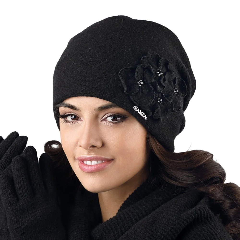 • Nakrycie głowy marki Kamea. Model Andora. Produkt został wykonany z 80% wełna, 20% poliamid. Zalety produktu: elegancka z kwiatkami wełniana. Produkt damski.