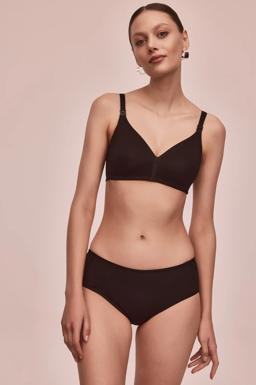 • Biustonosz marki Alles. Model Mama Easy M. Produkt posiada regulowane ramiączka bez możliwości ich odpięcia. Haczyki do ramiączek plastikowe. Biustonosz zapinany na haftki. Miejsce zapięcia: tył. Dwa rzędy haftek pionowych. Trzy stopnie haftek poziomych. Produkt został wykonany z 95% bawełna, 5% elastan. Odzież ciążowa. Zalety produktu: komfortowy bawełniany do karmienia. Bielizna ma odpinaną miseczkę. Produkt damski.