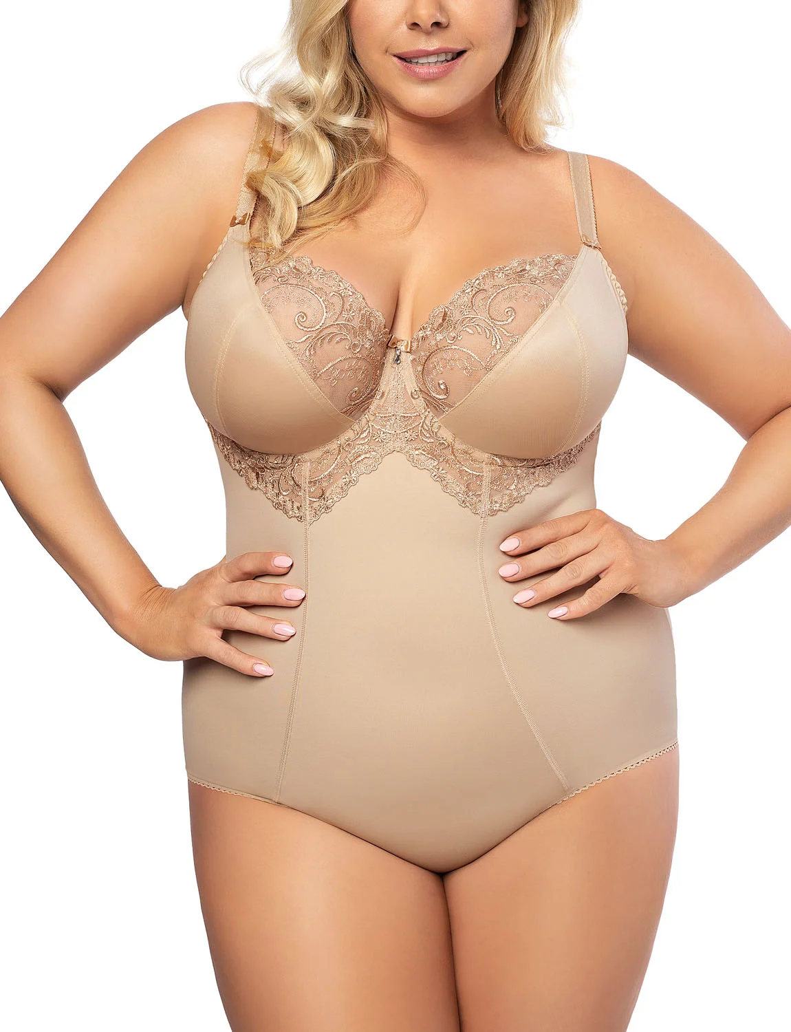 • Body marki Gorsenia. Model K356 Gala. Posiada druty, które podpierają piersi odpowiednio je kształtując. Z zapięciem w kroku. Body zapinany na haftki. Produkt został wykonany z 90% poliamid, 7% elastan, 3% poliester. Produkt posiada regulowane ramiączka bez możliwości ich odpięcia. Zalety produktu: modelujące wyszczuplające sylwetkę maxi. Trzy rzędy haftek pionowych. Odzież korygująca. Odzież modelująca. Bielizna wyszczuplająca. Produkt damski. Trzy stopnie haftek poziomych.