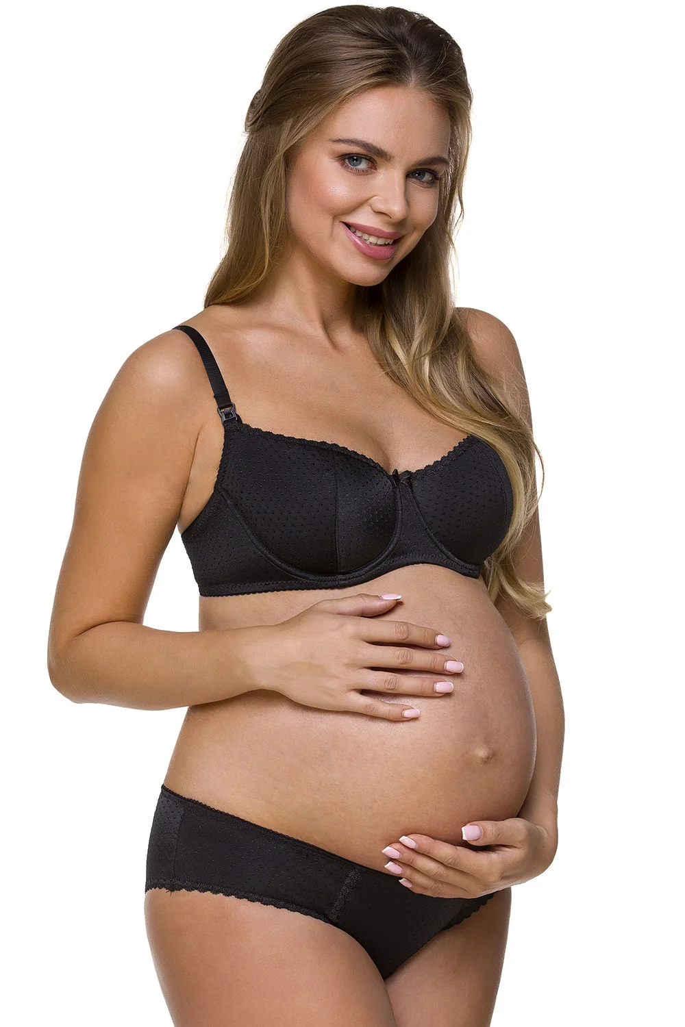 • Biustonosz marki Lupo. Model 1381. Posiada druty, które podpierają piersi odpowiednio je kształtując. Produkt posiada regulowane ramiączka bez możliwości ich odpięcia. Haczyki do ramiączek plastikowe. Biustonosz zapinany na haftki. Miejsce zapięcia: tył. Dwa rzędy haftek pionowych. Trzy stopnie haftek poziomych. Produkt został wykonany z 70% poliamid, 15% elastan, 15% bawełna. Odzież ciążowa. Produkt damski. Zalety produktu: miękki ciążowy do karmienia soft. Bielizna ma odpinaną miseczkę.