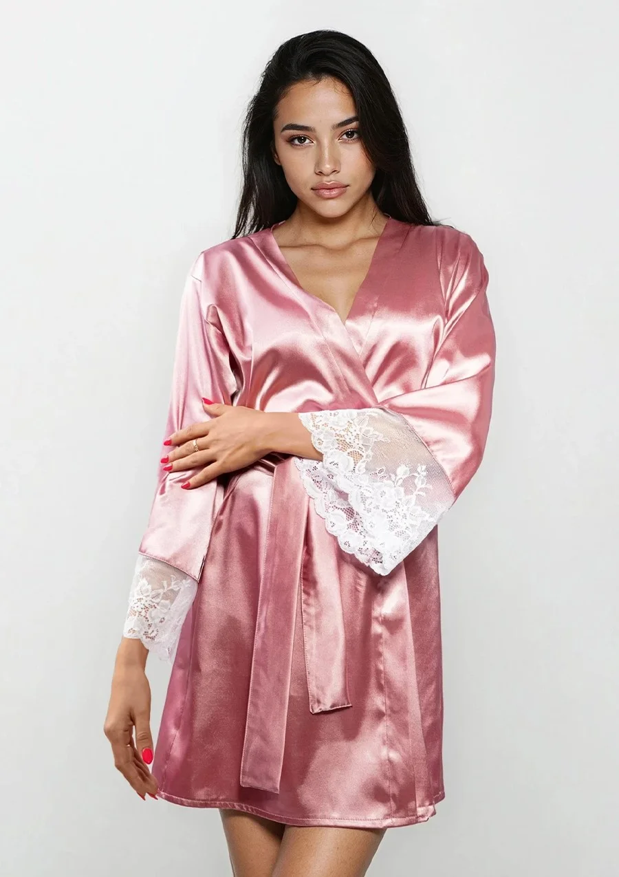 Satynowa podomka Nikola z szerokimi rękawami z koronką