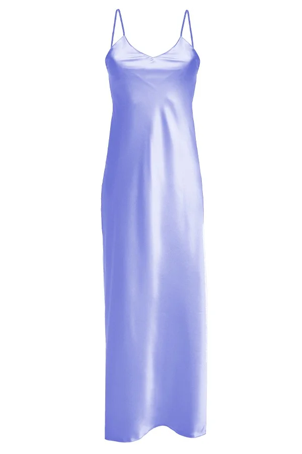 ZMYSŁOWA DŁUGA HALKA W JEDNOLITYM KOLORZE. KSZTAŁT DEKOLTU TO DELIKATNY TRÓJKĄT. RAMIĄCZKA SĄ CIENKIE I REGULOWANE.