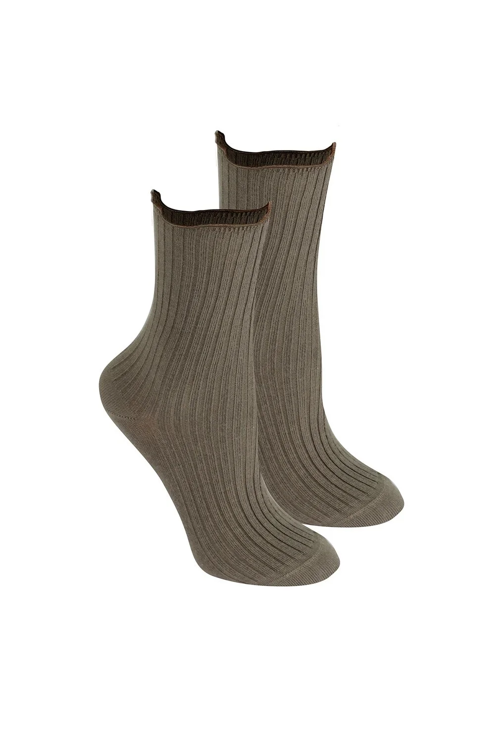 Prążkowane damskie skarpety wykonane z przyjemnych dla ciała surowców. Skarpety z bezuciskowym ściągaczem w uniwersalnym rozmiarze 36-39.