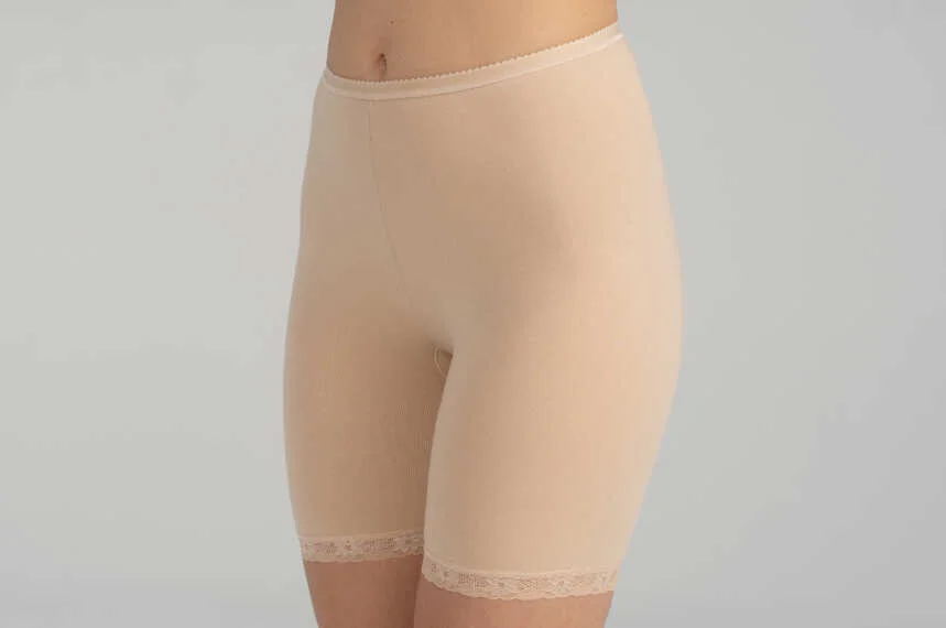 W pasie szersza, ozdobna guma, nogawki obszyte elastyczną koronką. Szew pośrodku z przodu i z tyłu, bok gładki, bezszwowy. Wykonane z bawełny z elastanem, idealnie dopasowują się do sylwetki. Bardzo praktyczne i wygodne.
