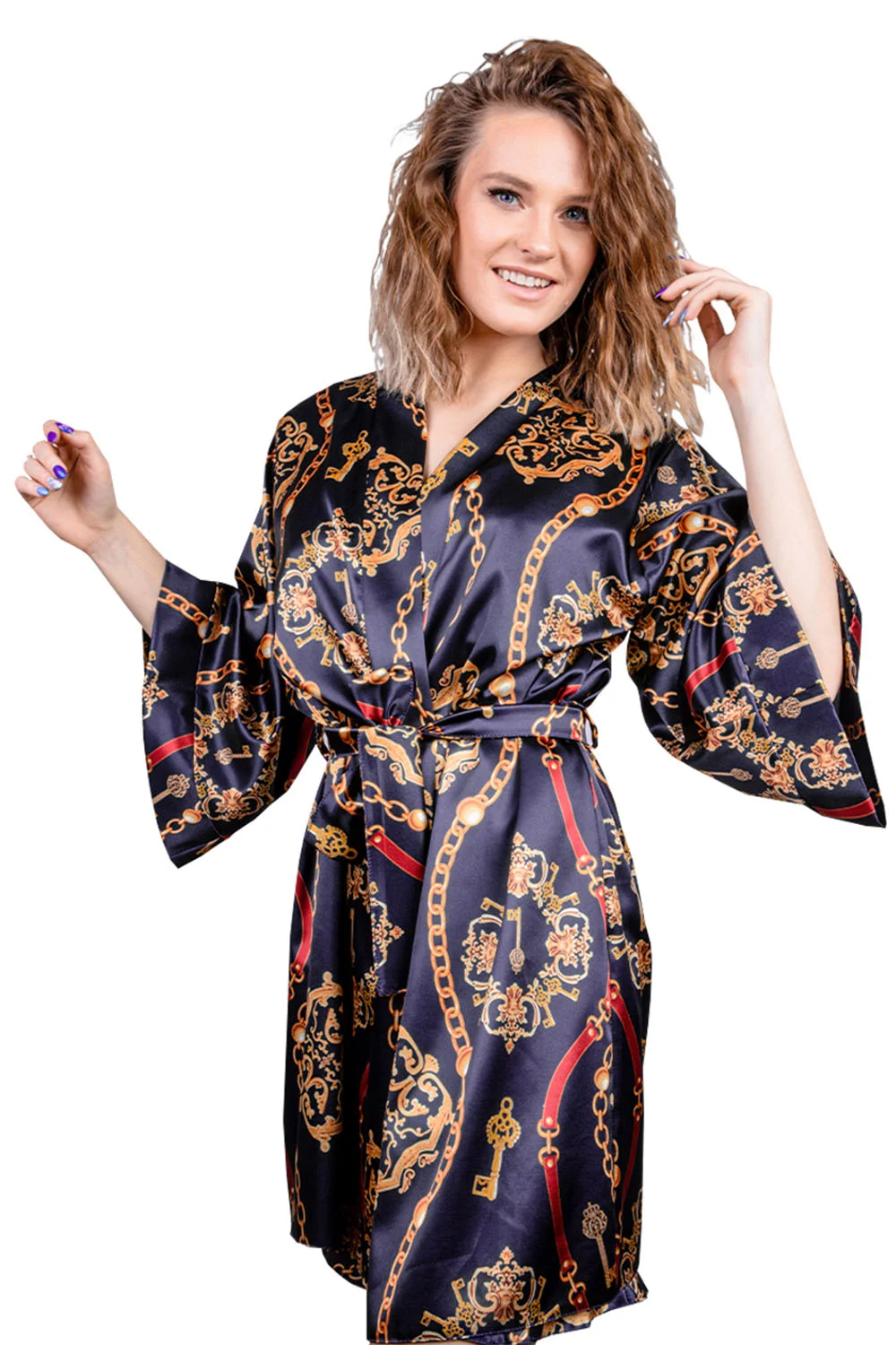 Mówi się, że klasyka nigdy nie wychodzi z mody… Co więc powiesz na klasyczną podomkę? Ten przyjemny, satynowy szlafroczek sięga do połowy ud oraz posiada szerokie, długie rękawy. Dołączony do niego jest pasek, dzięki któremu można pięknie wyeksponować swoją talię. Podomka z kolekcji świątecznej, dostępna jest w trzech wspaniałych wzorach. Pierwsza z nich, posiada nadruk złotych łańcuszków, kluczyków i bordowych paseczków, które idealnie komponują się z ciemnym kolorem materiału. Kolejna, zaskakuje materiałem w czarno-czerwoną kratkę z zabawnymi, świątecznymi nadrukami. Natomiast, trzecia będzie idealna dla każdej fanki zimowego szaleństwa - posiada nadruk rodem ze stoku. Kiedy założysz naszą podomkę po raz pierwszy, trudno będzie Ci się z nią później rozstać - zresztą przekonaj się o tym sama! Pamiętaj, aby przed złożeniem zamówienia zapoznać się z nasza tabelką z rozmiarówką. Dzięki niej unikniesz wybrania niewłaściwego rozmiaru bielizny nocnej. W przypadku pytań - śmiało, skontaktuj się z nami! Ciesz się świąteczną magią w cudownej podomce od Dkaren! MATERIAŁ: SATYNA SKŁAD SUROWCOWY: 100 % POLIESTER. Jak prać i prasować? Taki materiał najlepiej prać ręcznie w temperaturze 30°C. Proszę nie chlorować, nie czyścić chemicznie i nie wirować. Prasować w temperaturze 110°C.