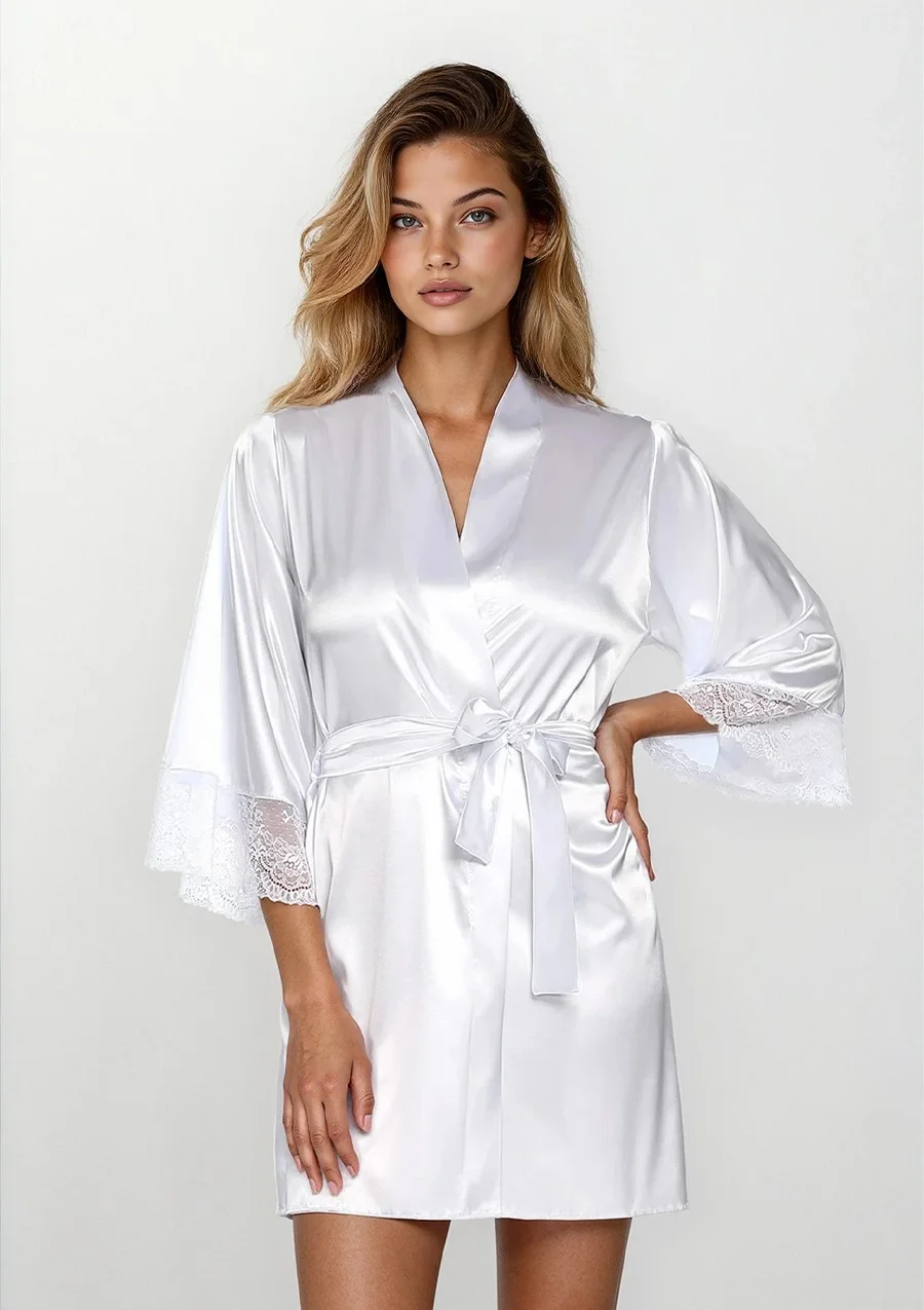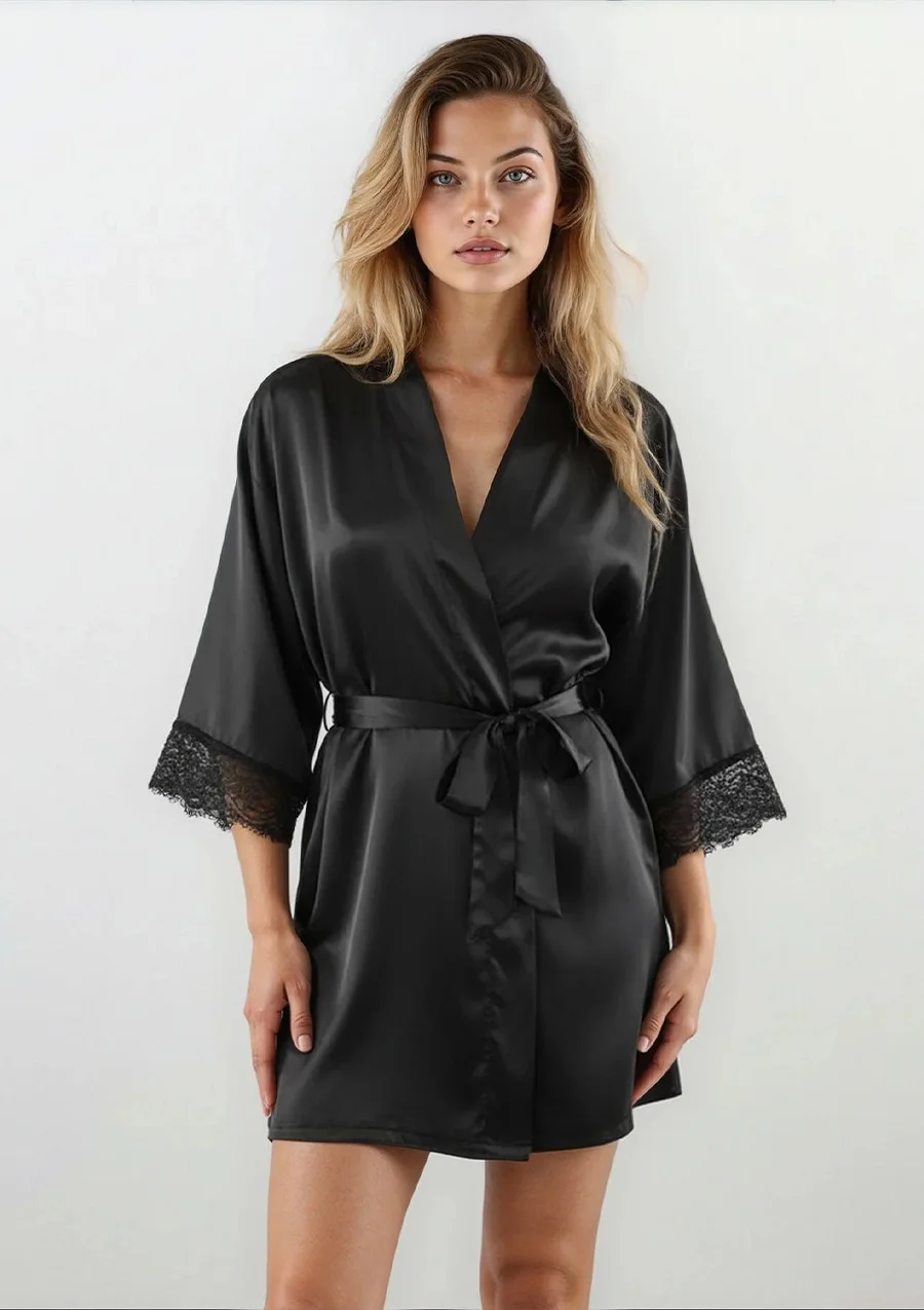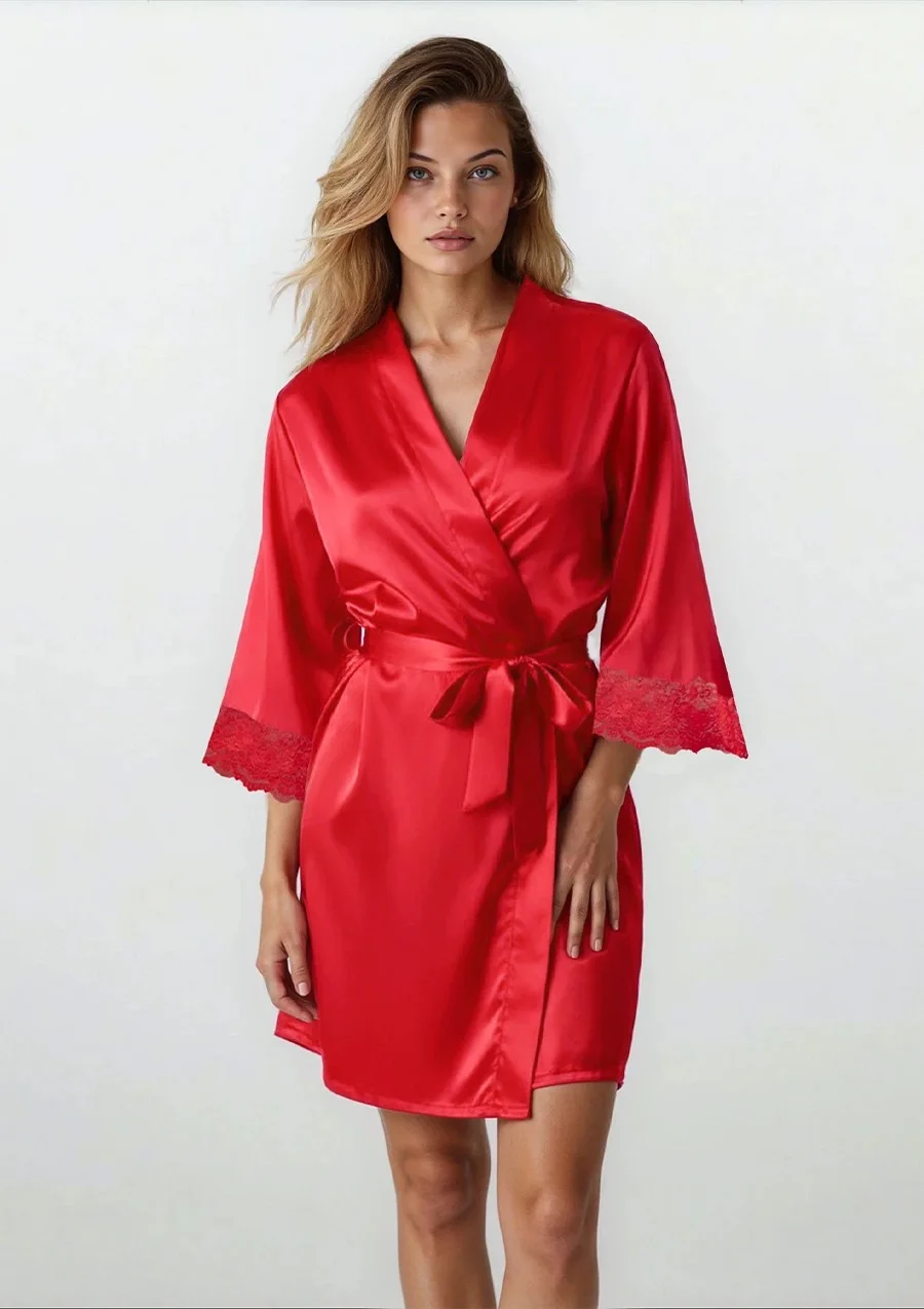 PRZYJEMNY SATYNOWY SZLAFROK DLA KAŻDEJ KOBIETY. DŁUGIE RĘKAWY WYKOŃCZONE PIĘKNĄ KORONKĄ . PRZEPLATANY PASKIEM SATYNOWYM, KTÓRY IDEALNIE DOPASOWUJE SIĘ DO SYLWETKI, UWYDATNIAJĄC ATUTY KOBIECEGO CIAŁA. WERSJA KOLORYSTYCZNA: GRANAT, CZERWONY, JASNY ECRU, BIAŁY, CZARNY (KORONKA W KOLORZE SATYNY).