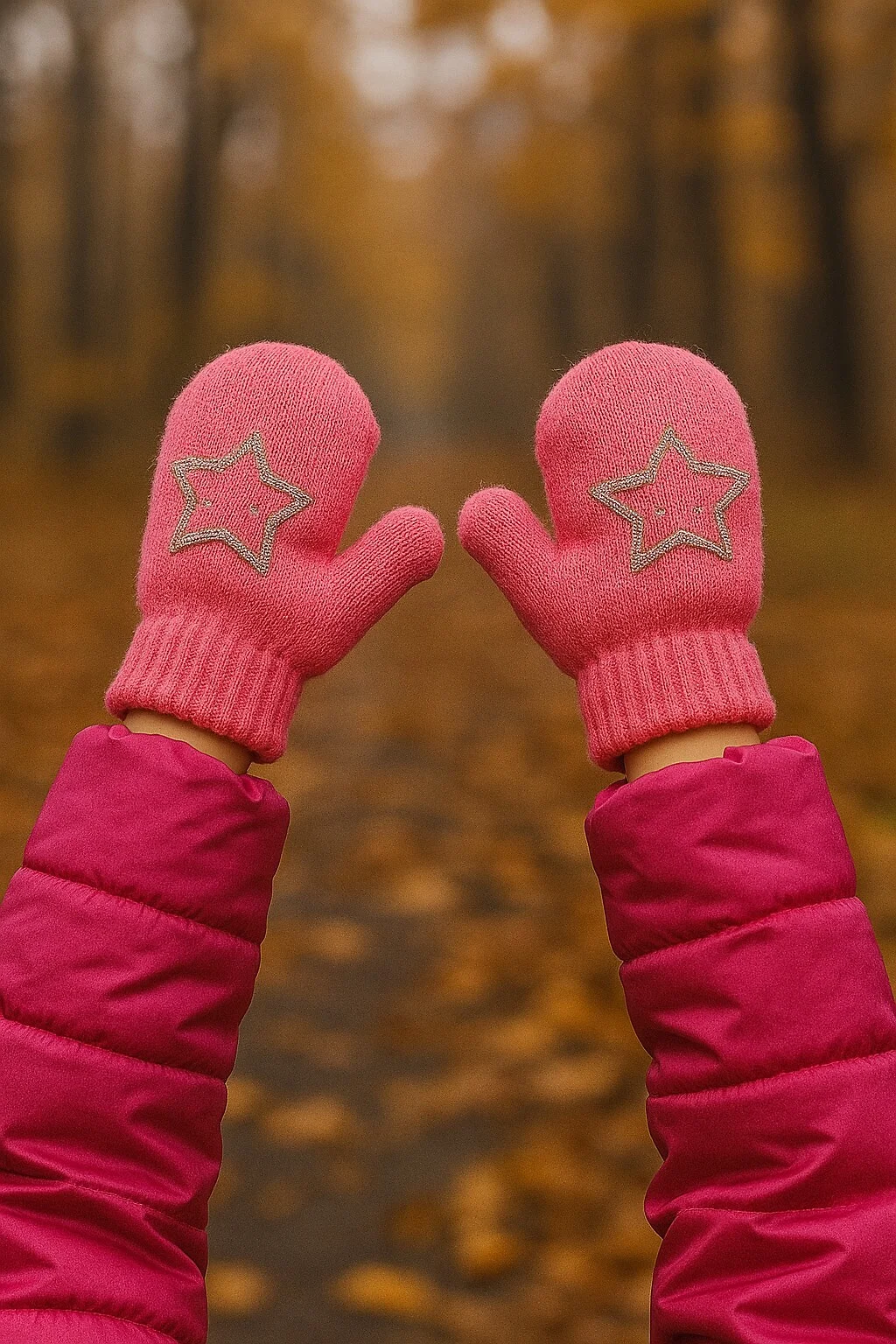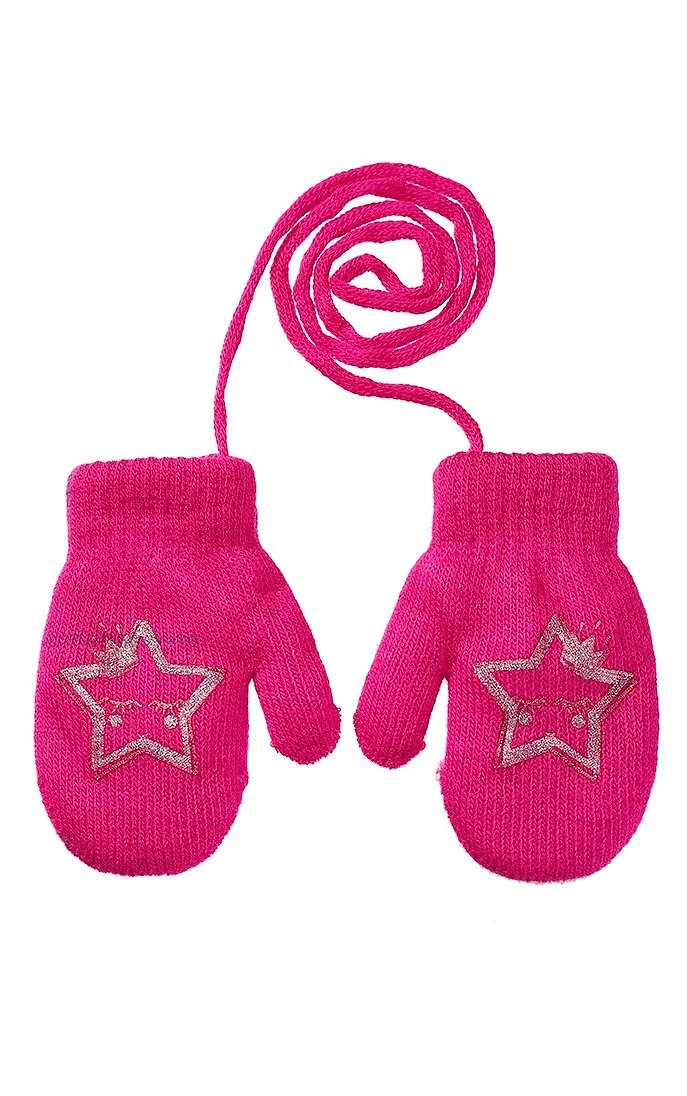 Rękawiczki dziecięce - połączone sznureczkiem - z jednym paluszkiem - zdobione gumowanym, brokatowym nadrukiem "kotek", "gwiazdka" - od wewnętrznej strony ciepły meszek - doskonała ochrona przed zimnem - dostępne kolory, wybierane losowo: ecru, różowy, pudrowy, amarantowy, grafitowy, szary, ciemny beżowy Skład: 77% akryl, 20% poliester, 3% elastan, podszewka 85% poliester, 15% elastan