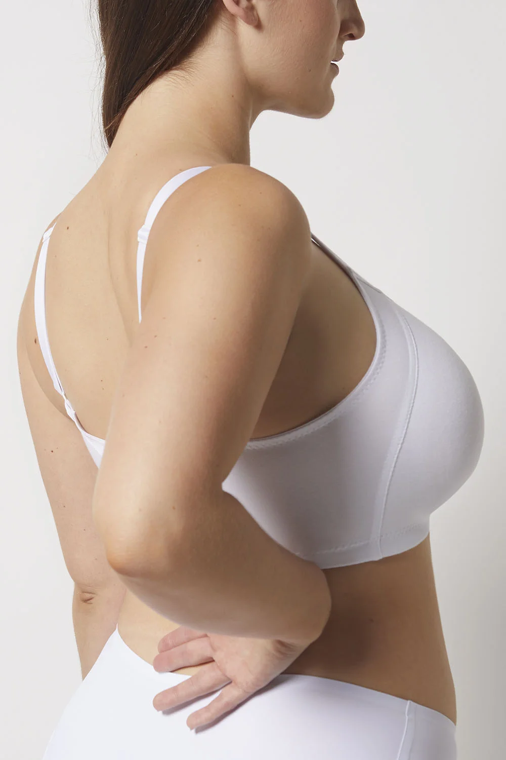 • Biustonosz marki Selene. Model Blanca. Produkt posiada regulowane ramiączka bez możliwości ich odpięcia. Biustonosz zapinany na haftki. Miejsce zapięcia: tył. Produkt został wykonany z 47% poliamid, 42% bawełna, 11% elastan. Produkt damski.