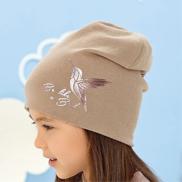 Wiosenna czapka damska - bawełna - dwustronna - otok ozdobiony połyskującym nadrukiem   Skład: 95% bawełna, 5% elastan