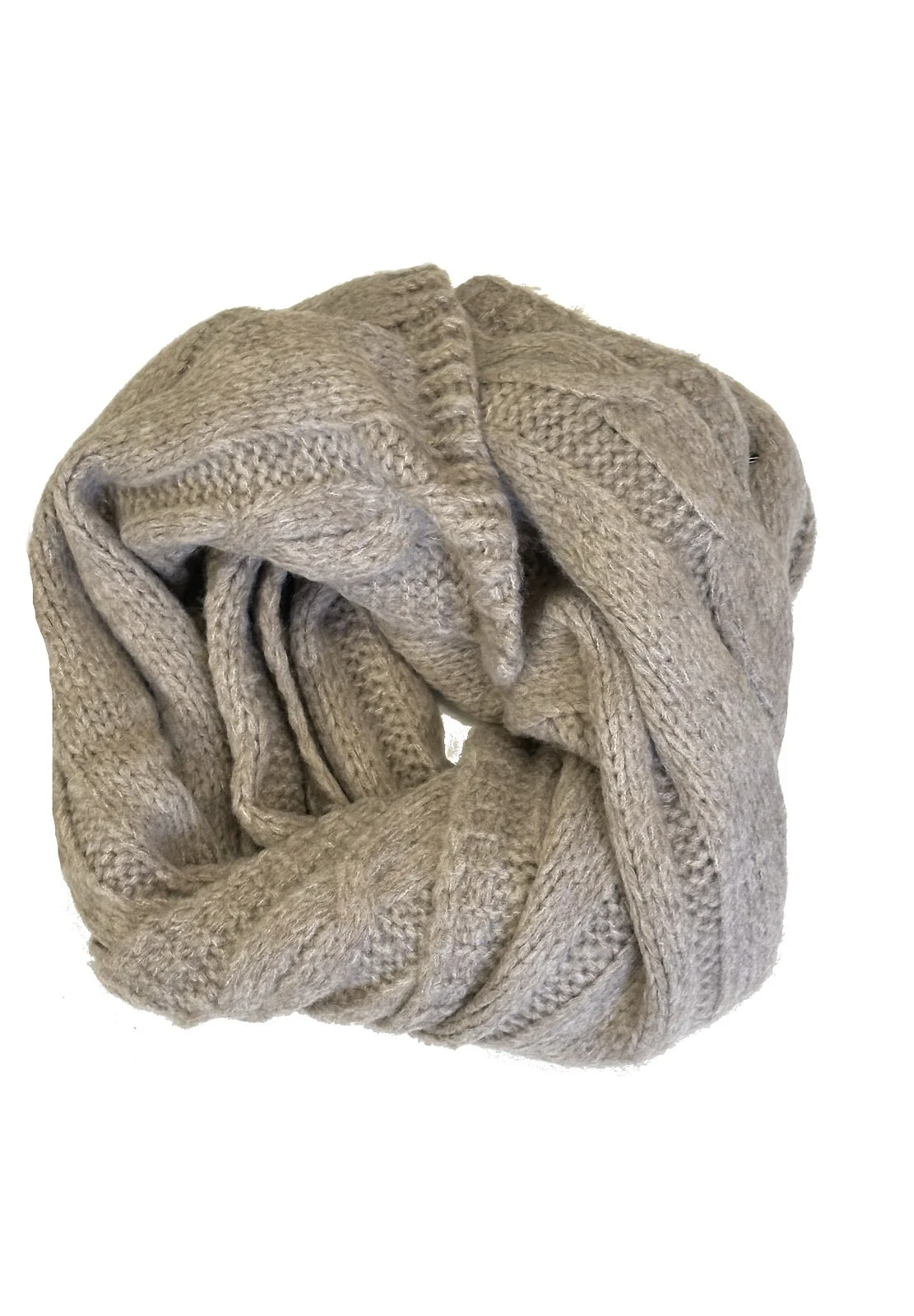 Ciepły szalik damski - długi - ozdobiony grubym splotem i warkoczem - naszywka z logo P&M   Skład: 76% akryl, 12% nylon, 12% poliester