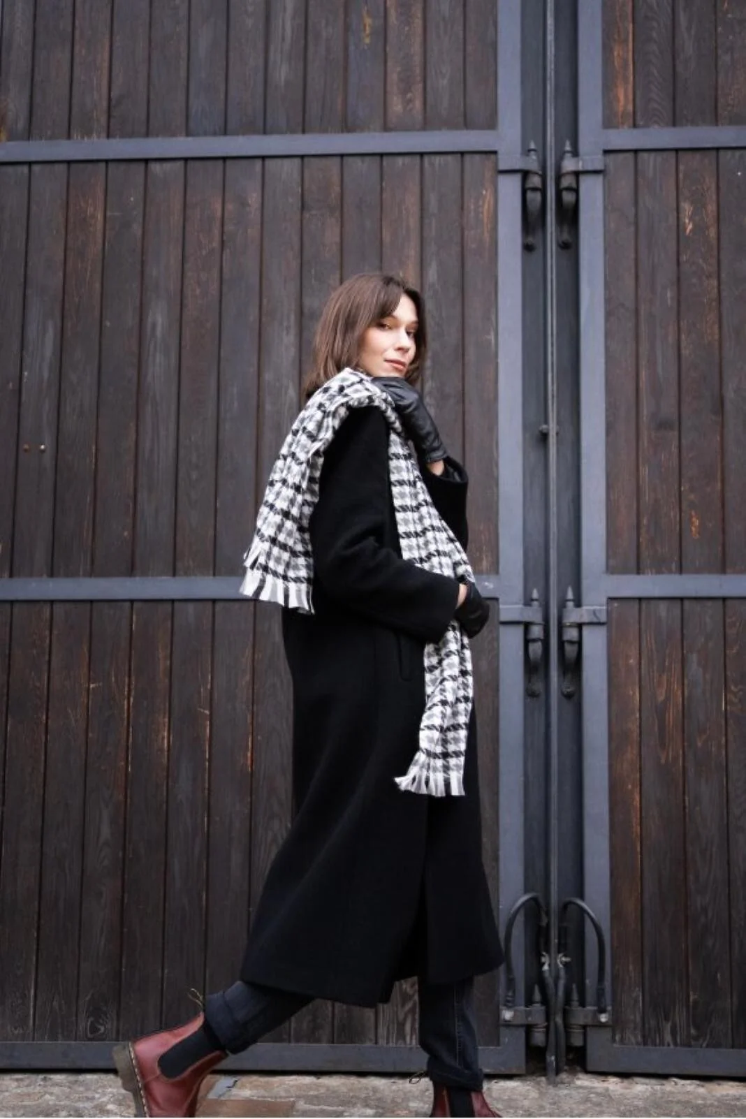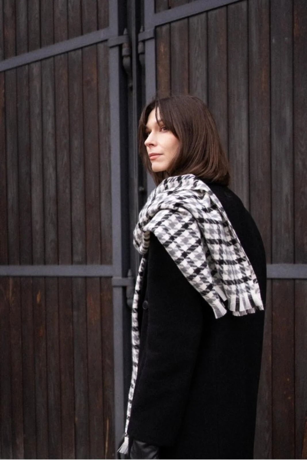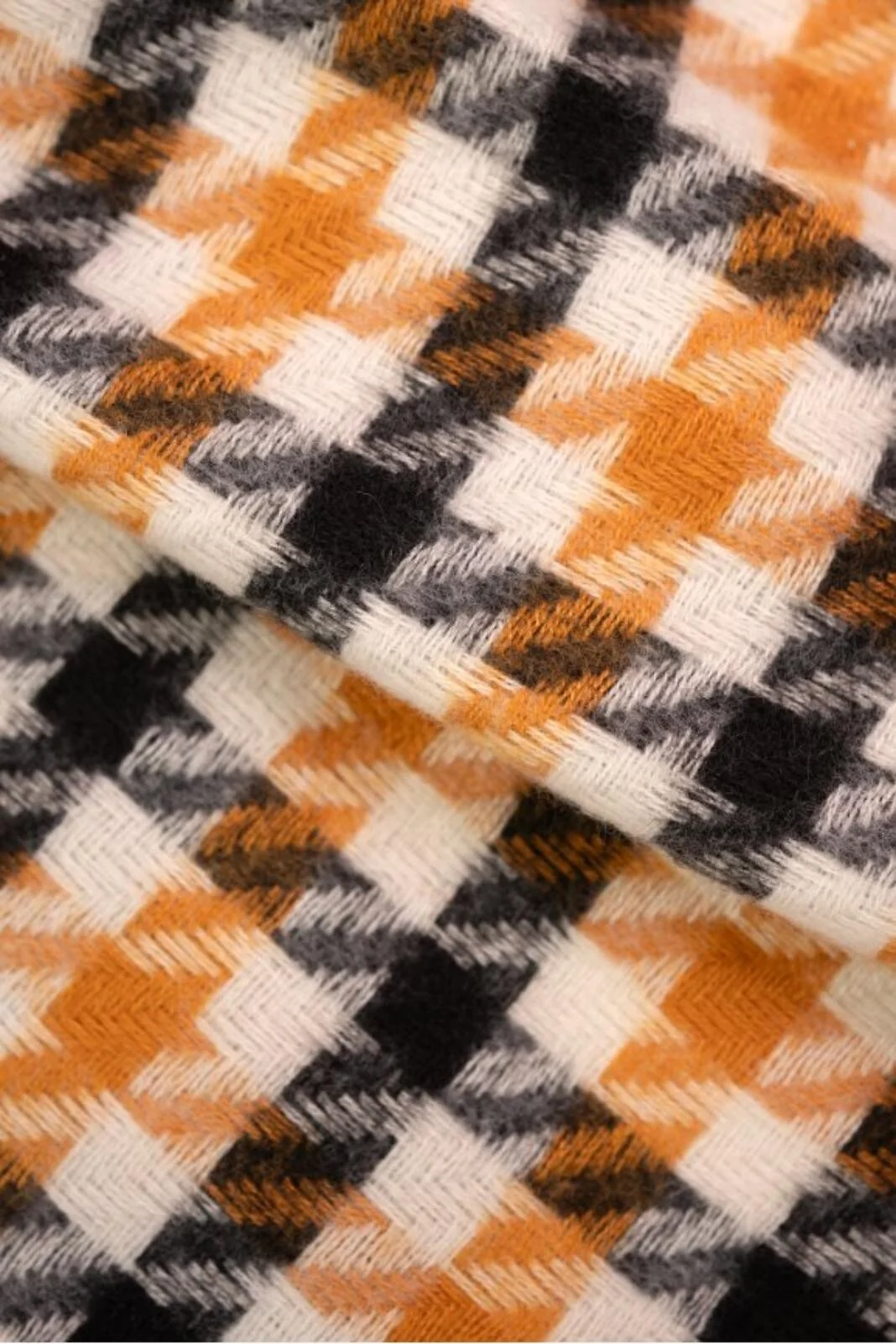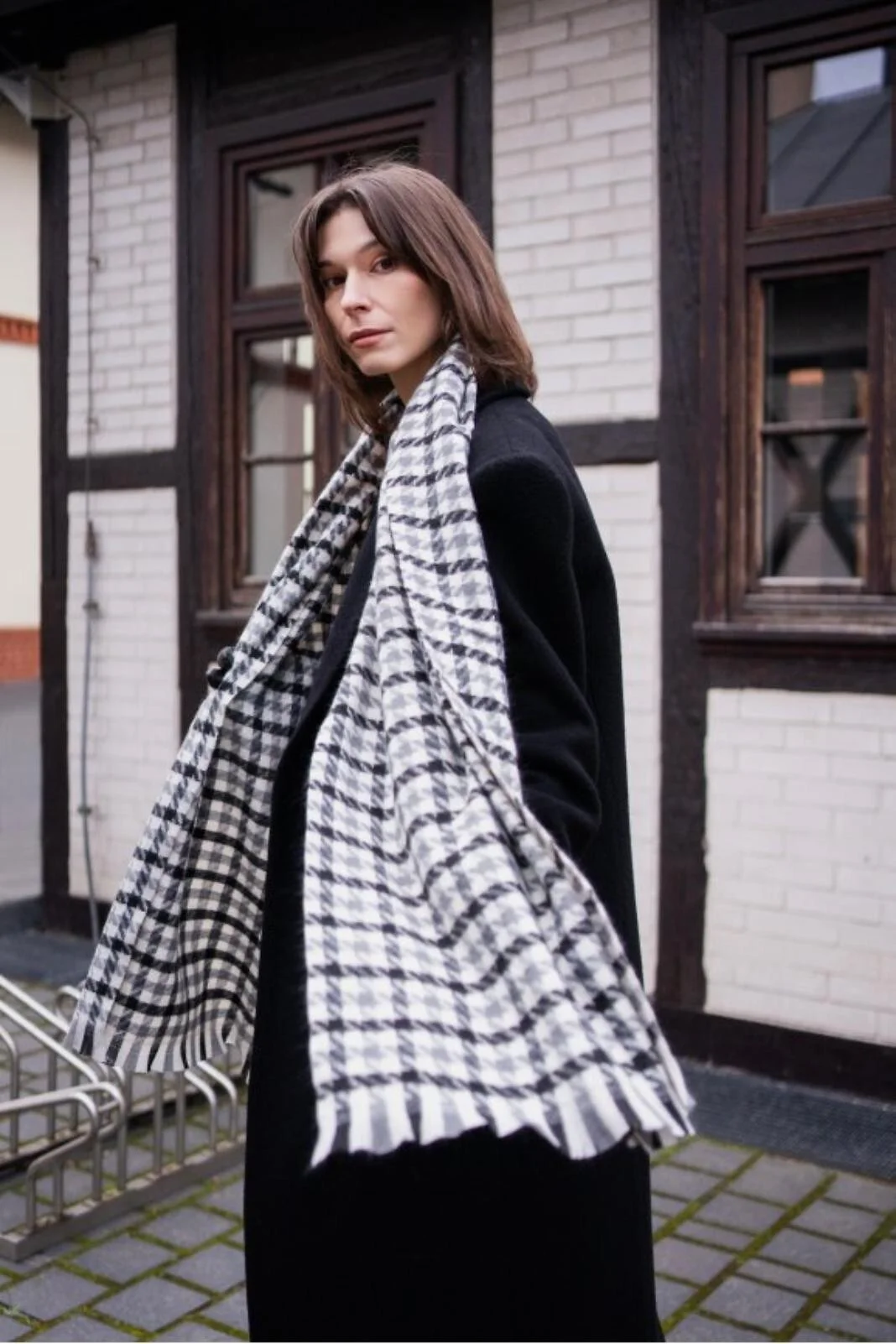 Klasyczny szal damski - miękka dzianina - wzór w kratę - zachwyca niezwykłymi połączeniami kolorystycznymi - długość 200 cm   Skład: 100% akryl