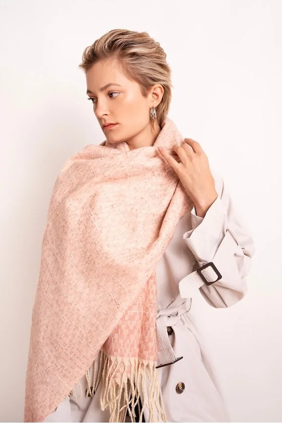 Stonowany szal damski - subtelna kolorystyka - miękki i ciepły materiał zapewnia komfort noszenia w ciepłe dni - delikatne frędzelki na zakończeniach dodają mu lekkości i kobiecego charakteru - długość 200 cm, szerokość 70 cm   Skład: 100% akryl