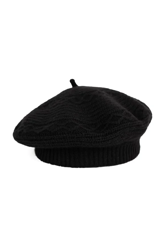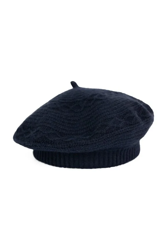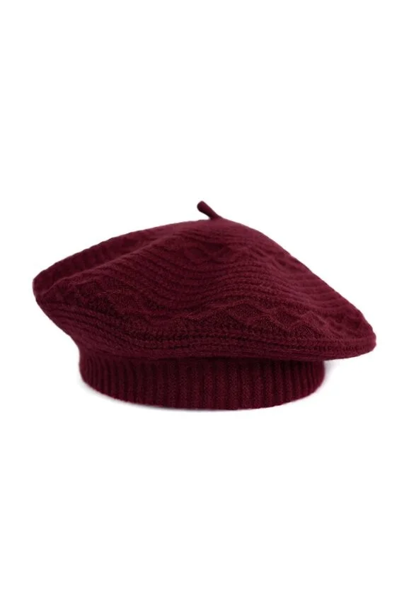 Stylowy, dziergany beret - miękka dzianina z dodatkiem angory - delikatne włoski charakterystyczne dla tej przędzy nadają mu subtelnej miękkości i eleganckiego wykończenia - niezwykle kobiecy dodatek na chłodniejsze dni   Skład: 70% akryl, 30% angora