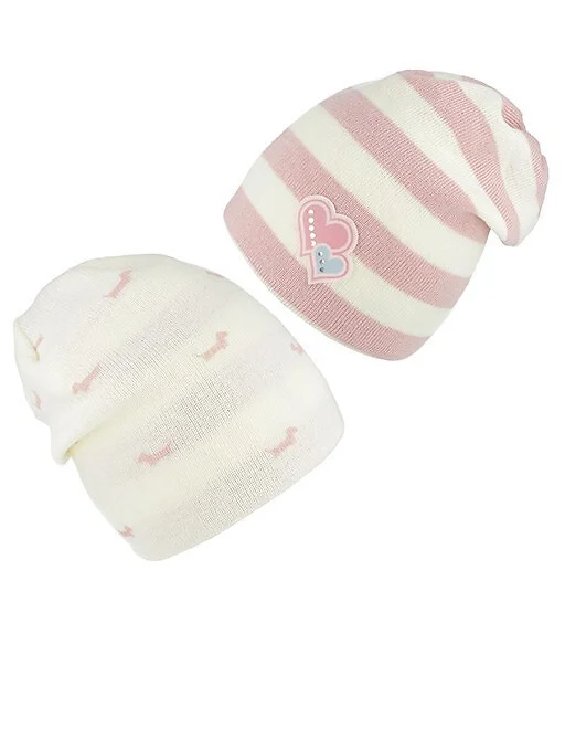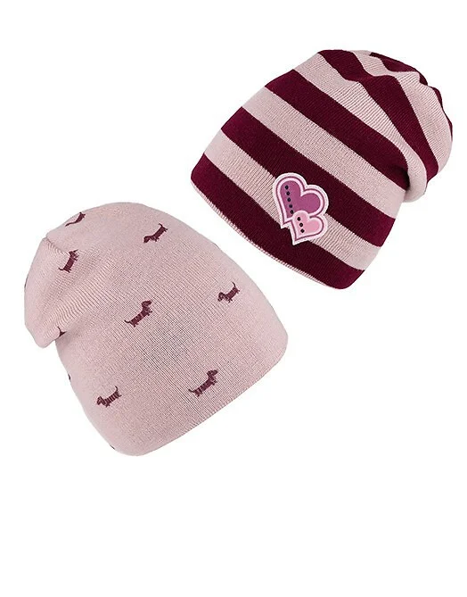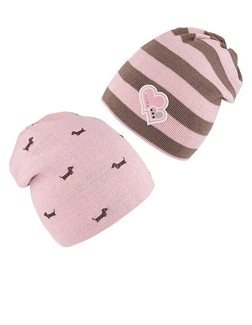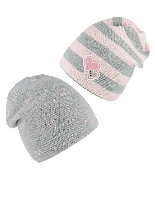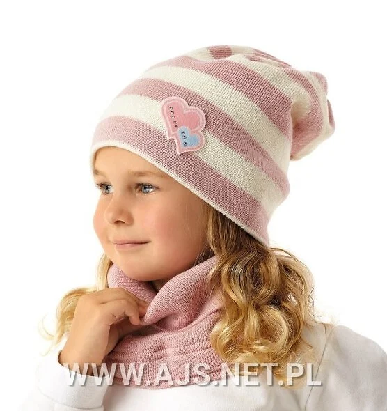 Czapka dziewczęca dwustronna - jednowarstwowa - zdobiona serduszkiem skład: 100% akryl