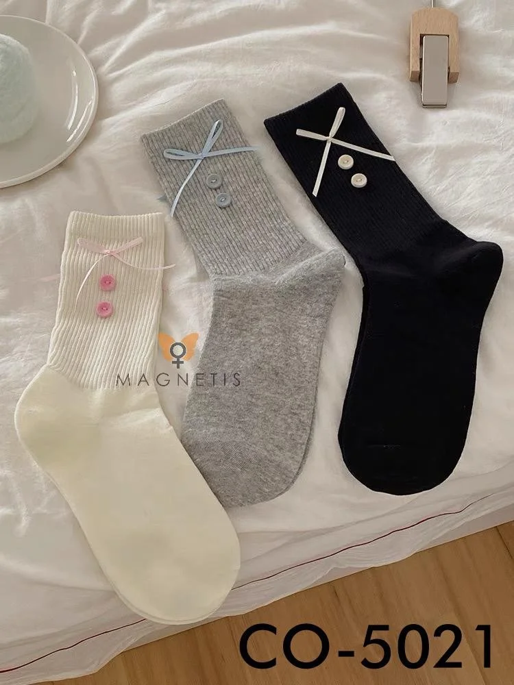 • wydłużona prążkowana cholewka ozdobiona guzikami i kokardką,