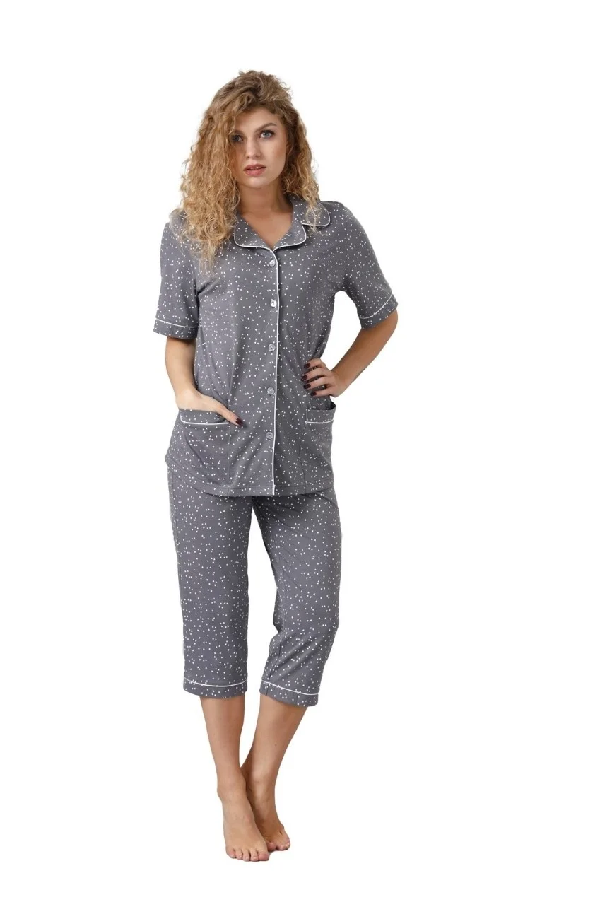 Piżama damska rozpinana z krótkim rękawem i spodniami 3/4
