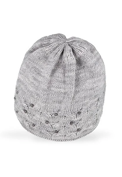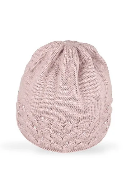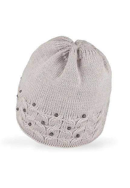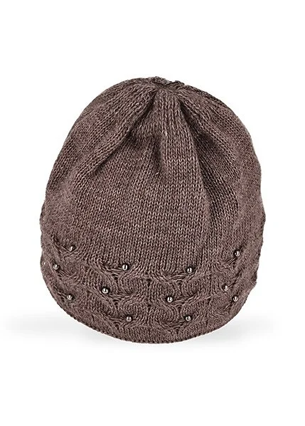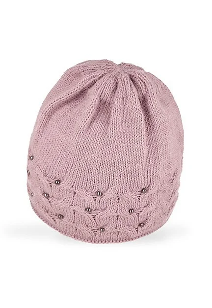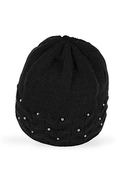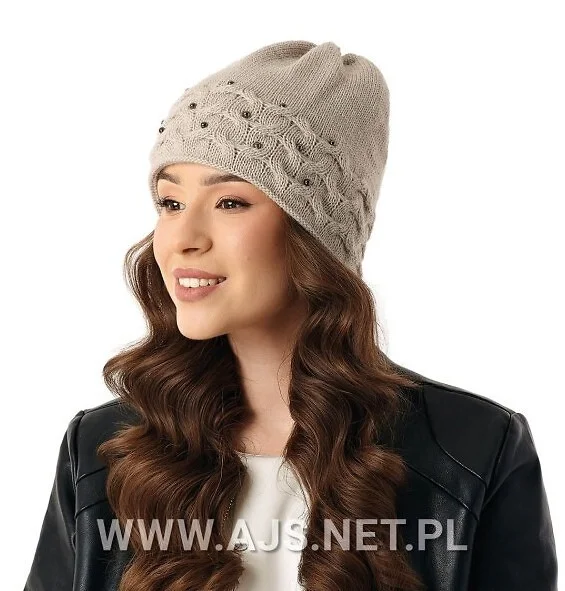 Czapka damska - dwuwarstwowa - idealna na zimowe dni - zdobiona koralikami   Skład: 85% akryl, 15% poliamid