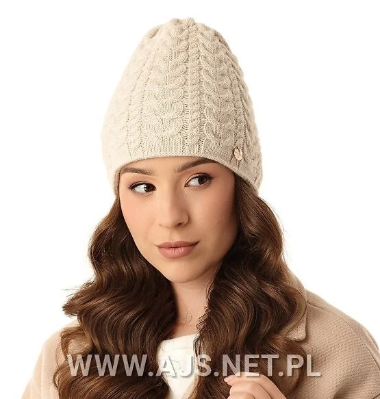 Czapka damska - dwuwarstwowa - idealna na zimowe dni - zdobiona delikatnym splotem i naszywką   Skład: 100% akryl