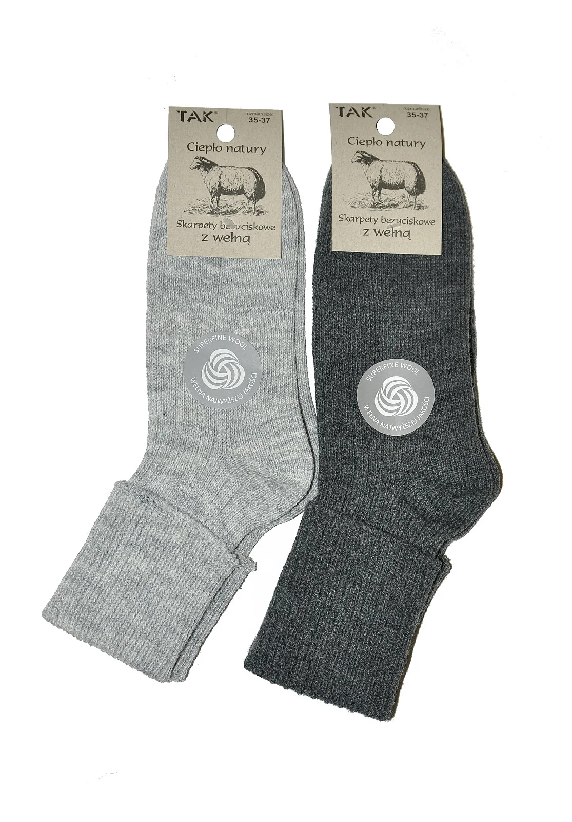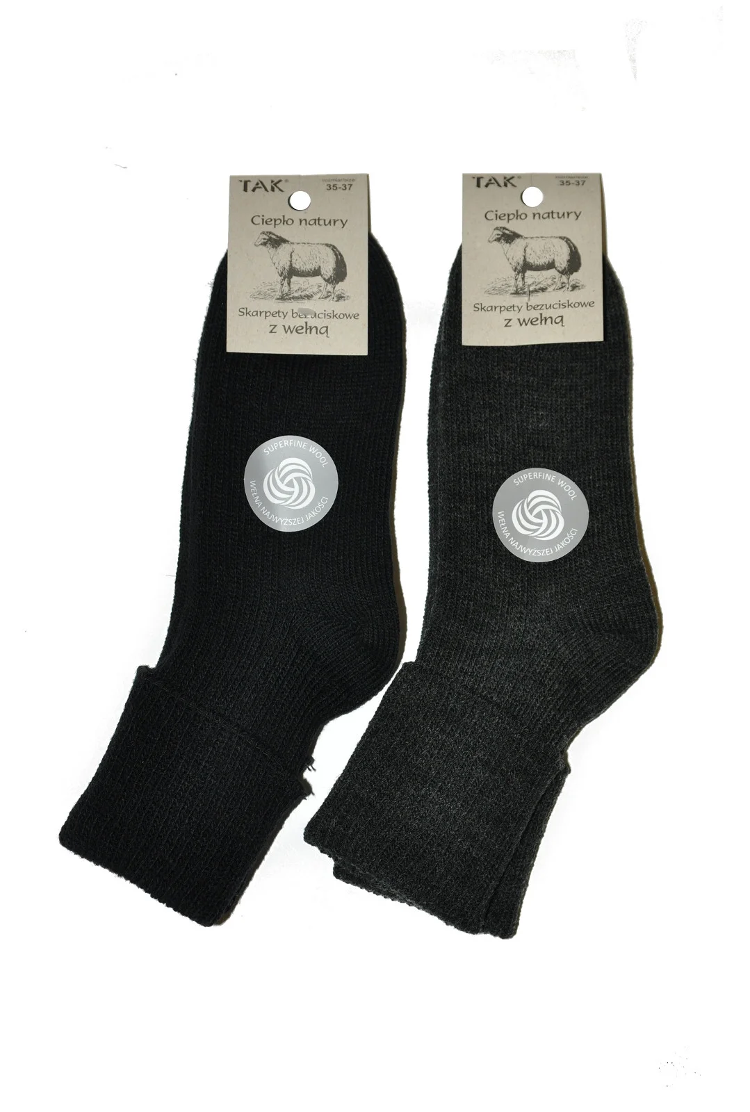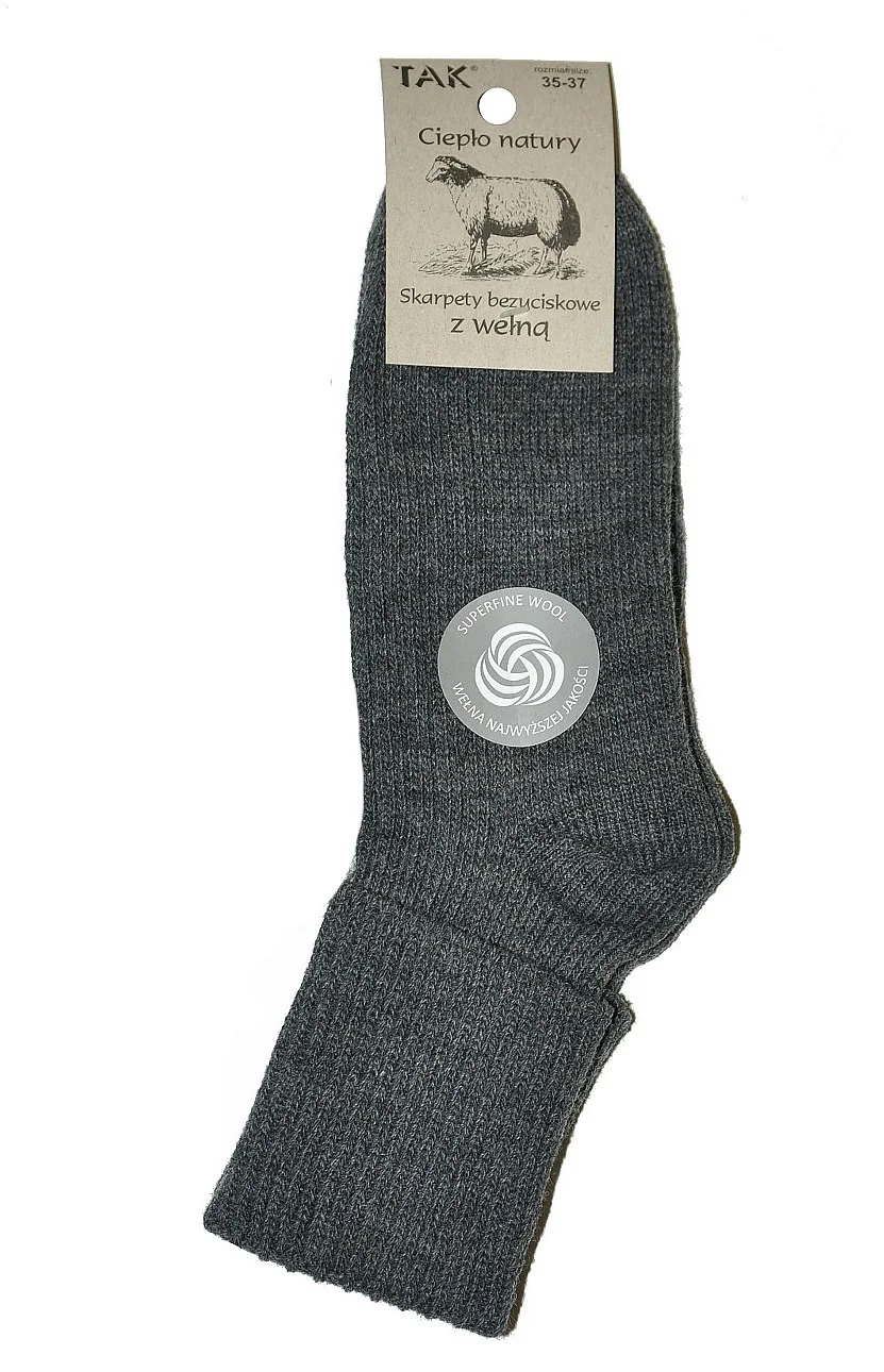 Ciepłe skarpety damskie na zimę w prążki - z nieuciskającym ściągaczem - dostępne kolory: ecru, piaskowy, c.beżowy, szary, c.szary, grafitowy, jeans, czarny, brązowy - wybierane losowo - wskazania kolorystyczne prosimy wpisywać w uwagach Skład: 50% akryl, 30% wełna, 17% poliamid, 3% elastan