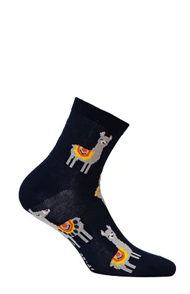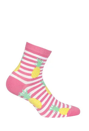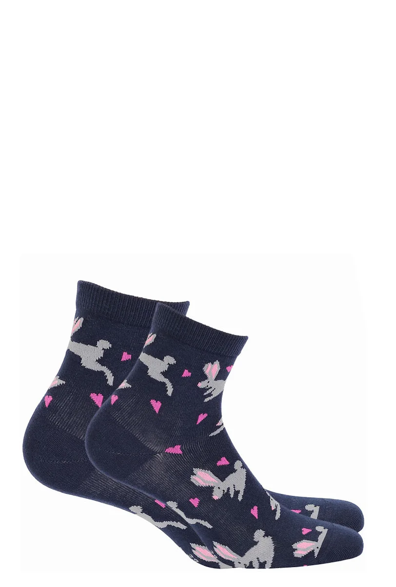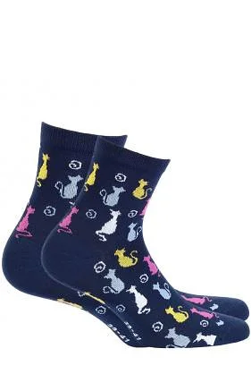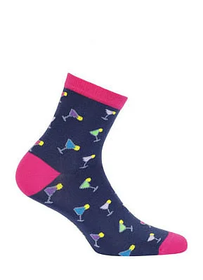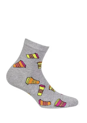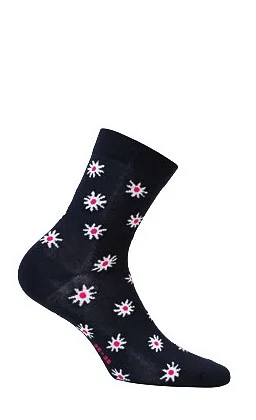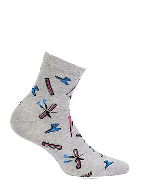 Skarpety damskie - wykonane z miękkiej bawełny, nieuciskające - wzorowane komputerowo - wykończenie standardowe Skład uzależniony od wzoru: 80-83% bawełna, 10-13% poliamid, 5% polipropylen, 2% elastan