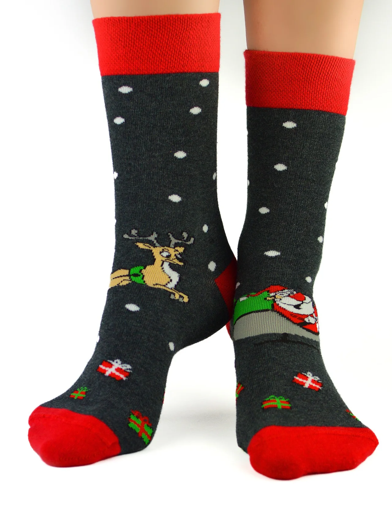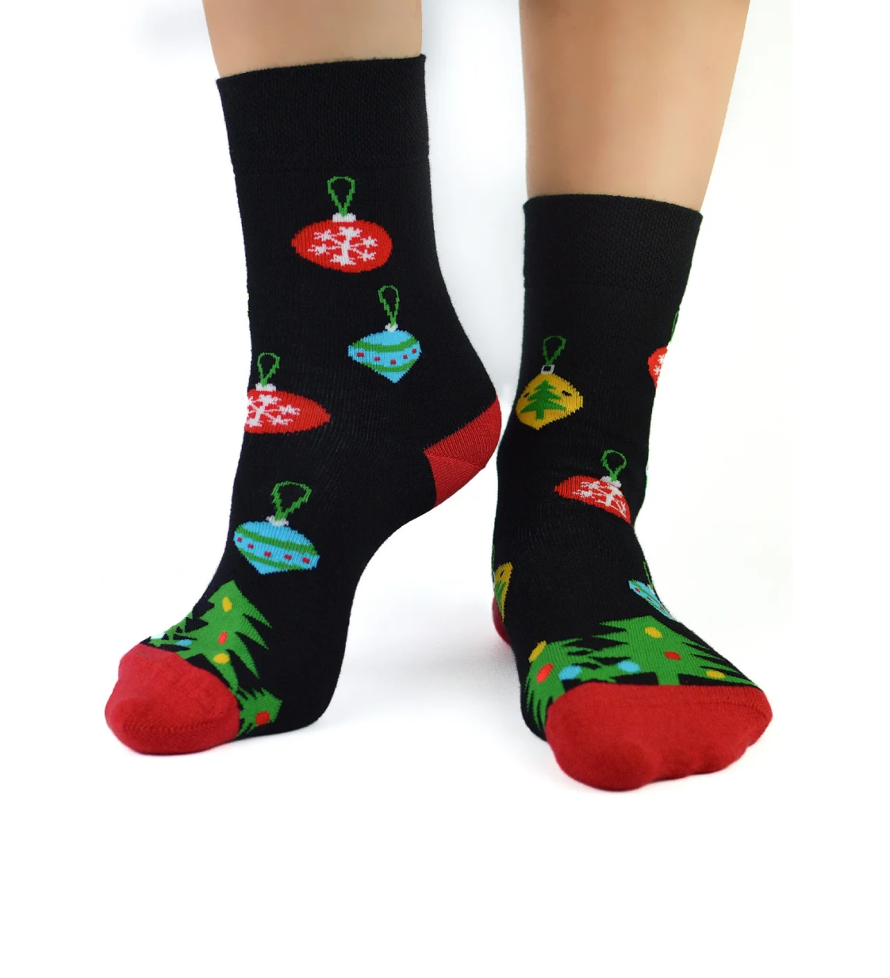 Skarpety damskie - świąteczny, kolorowy print - wygodny ściągacz - wyprofilowana pięta   Skład: 80% bawełna, 18% poliamid, 2% elastan