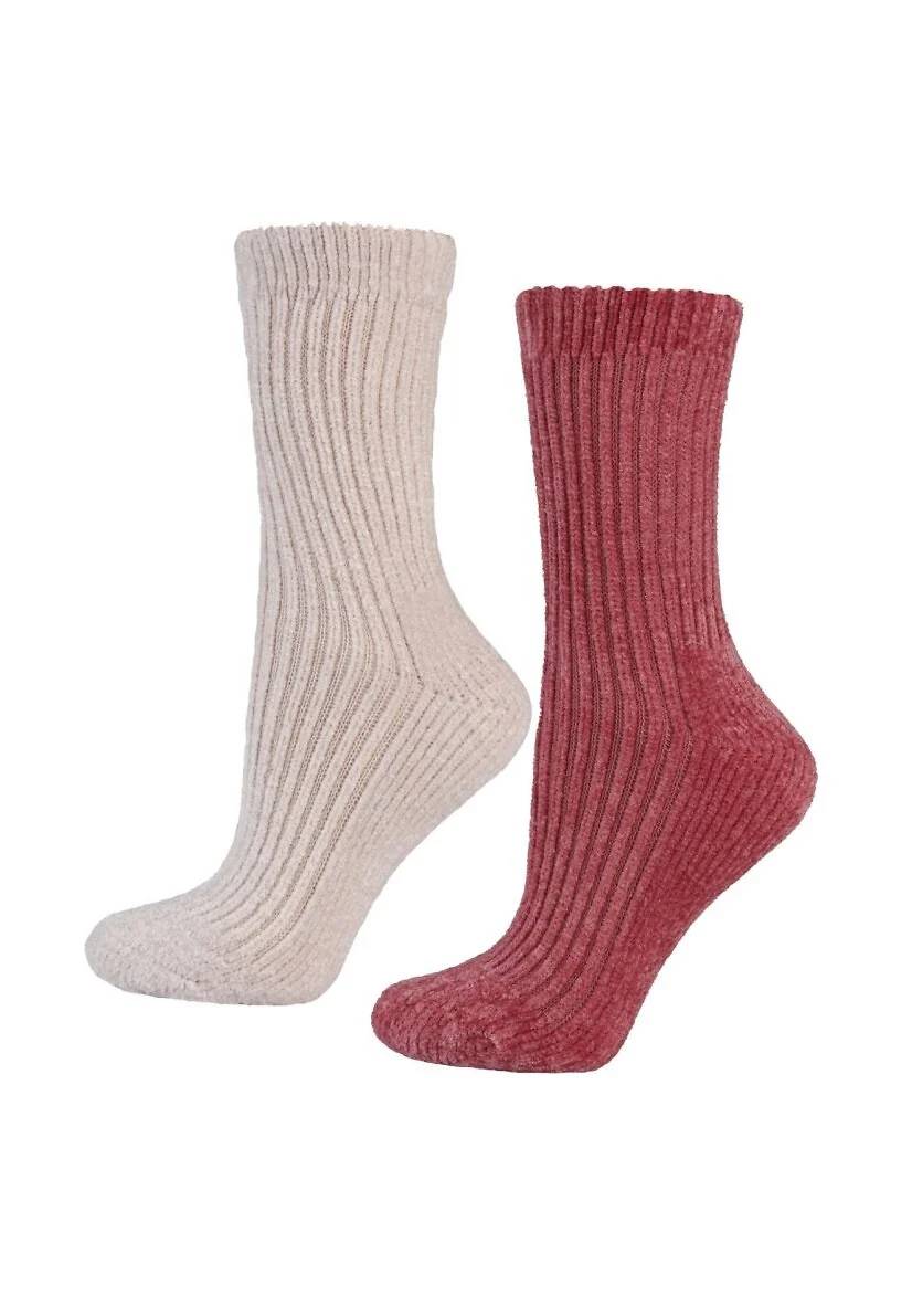 Skarpety damskie - miękka, miła w dotyku melanżowa dzianina - delikatny prążek - wygodny, nieuciskający ściągacz - pakowane po dwie pary w dostępnych zestawach kolorystycznych: beżowy/pudrowy róż, ecru/zielony, granatowy/bordowy Skład: 98% poliester, 2% poliamid