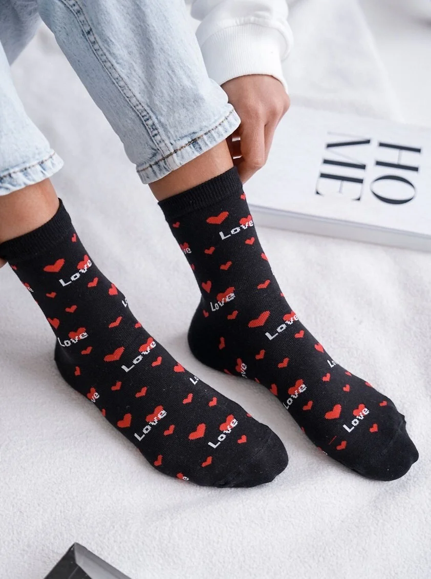 Skarpety damskie - wykonane z wysokiej jakości bawełny - ozdobione wzorem serduszka - doskonale sprawdzą się w codziennych stylizacjach - idealnie dopasowują się do stóp - zapewniają wysoki komfort noszenia   Skład: 75% bawełna, 20% poliamid, 5% elastan