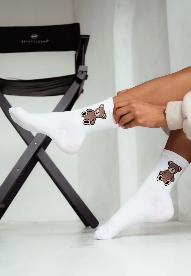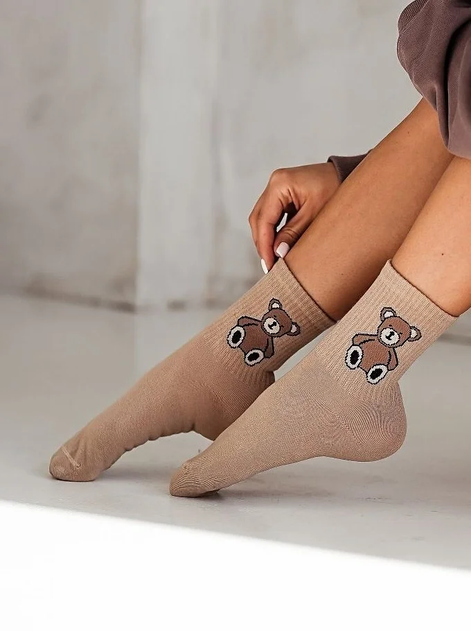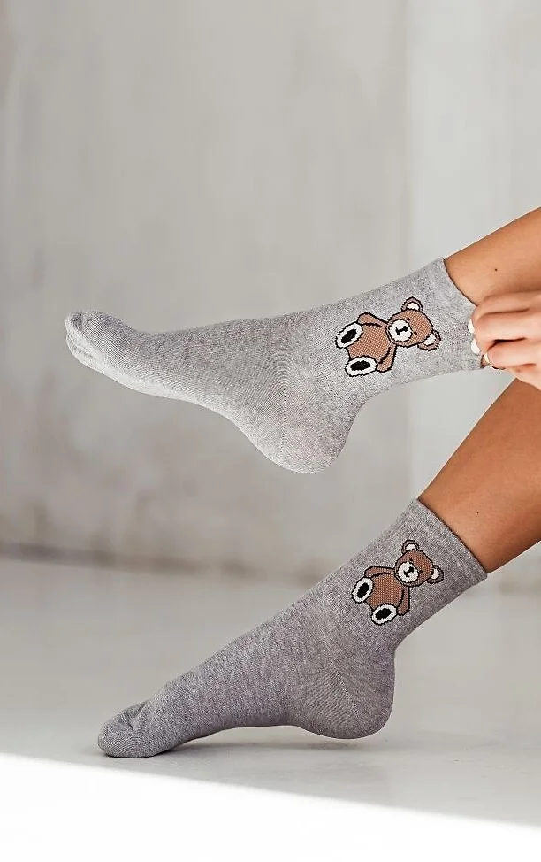 Skarpety damskie - wykonane z wysokiej jakości bawełny - ozdobione wzorem misiem - doskonale sprawdzą się w codziennych stylizacjach - idealnie dopasowują się do stóp - zapewniają wysoki komfort noszenia   Skład: 75% bawełna, 20% poliamid, 5% elastan
