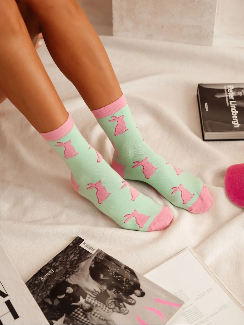 Skarpetki damskie - wykonane z wysokiej jakości bawełny - ozdobione wzorem w króliczki - doskonale sprawdzą się w codziennych stylizacjach - idealnie dopasowują się do stóp - zapewniają wysoki komfort noszenia   Skład: 75% bawełna, 20% poliamid, 5% elastan