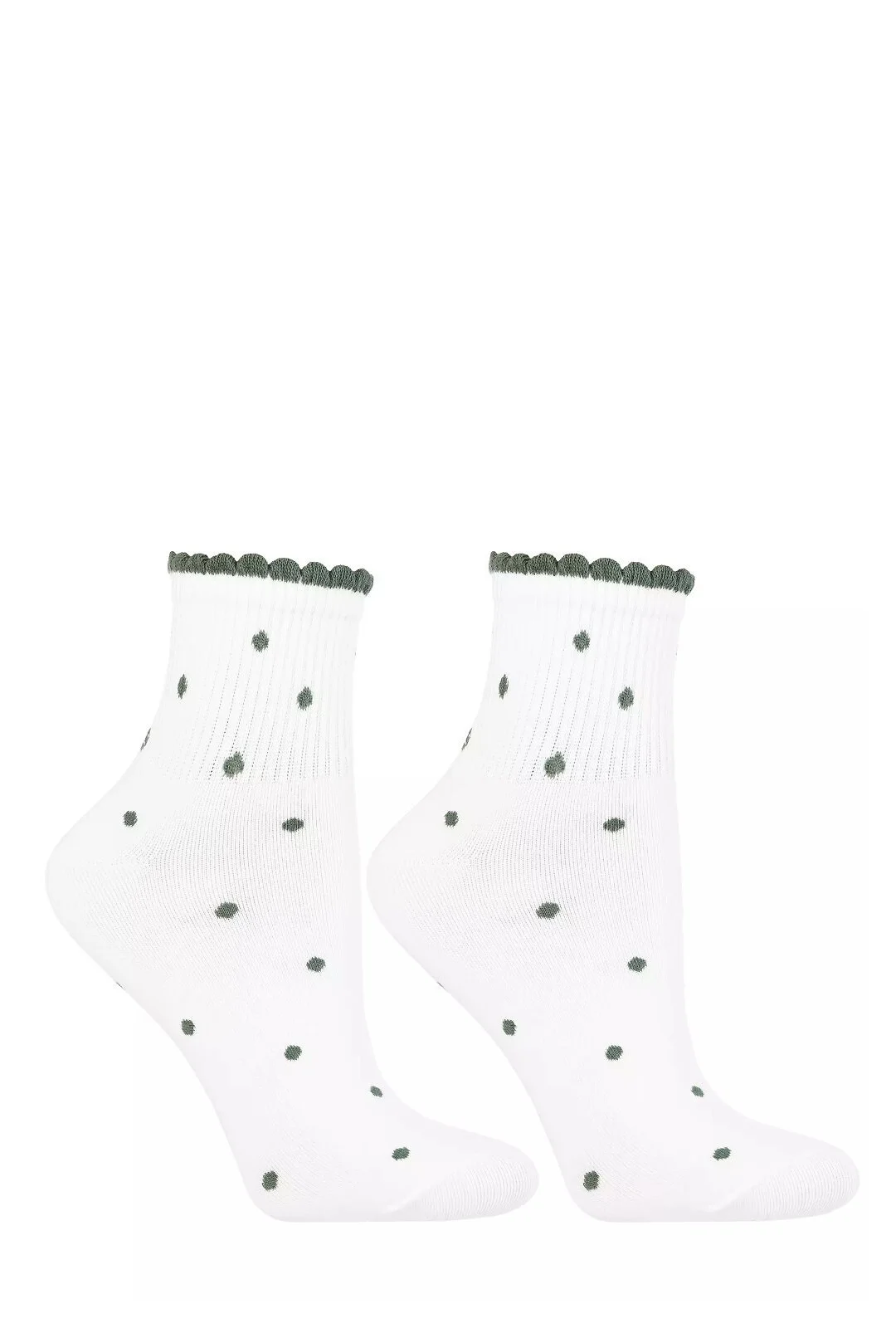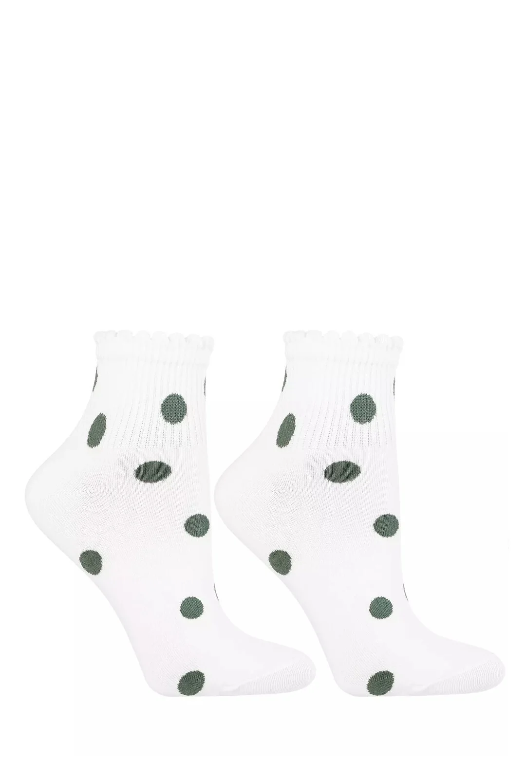 Skarpetki damskie - wykonane z wysokiej jakości bawełny - prążkowana cholewka - doskonale sprawdzą się w codziennych stylizacjach - idealnie dopasowują się do stóp - zapewniają wysoki komfort noszenia - dostępne w 3 wzorach w kolorze ecru - wybierane losowo   Skład: 69% bawełna, 28% poliamid, 3% elastan