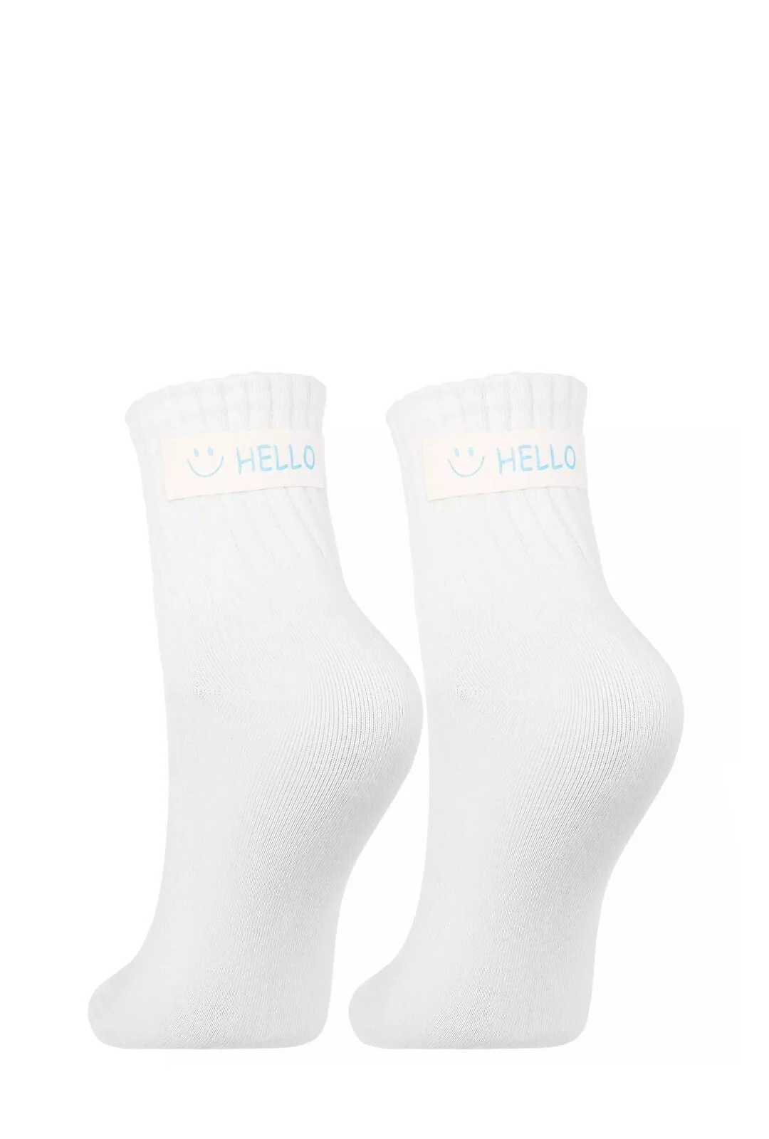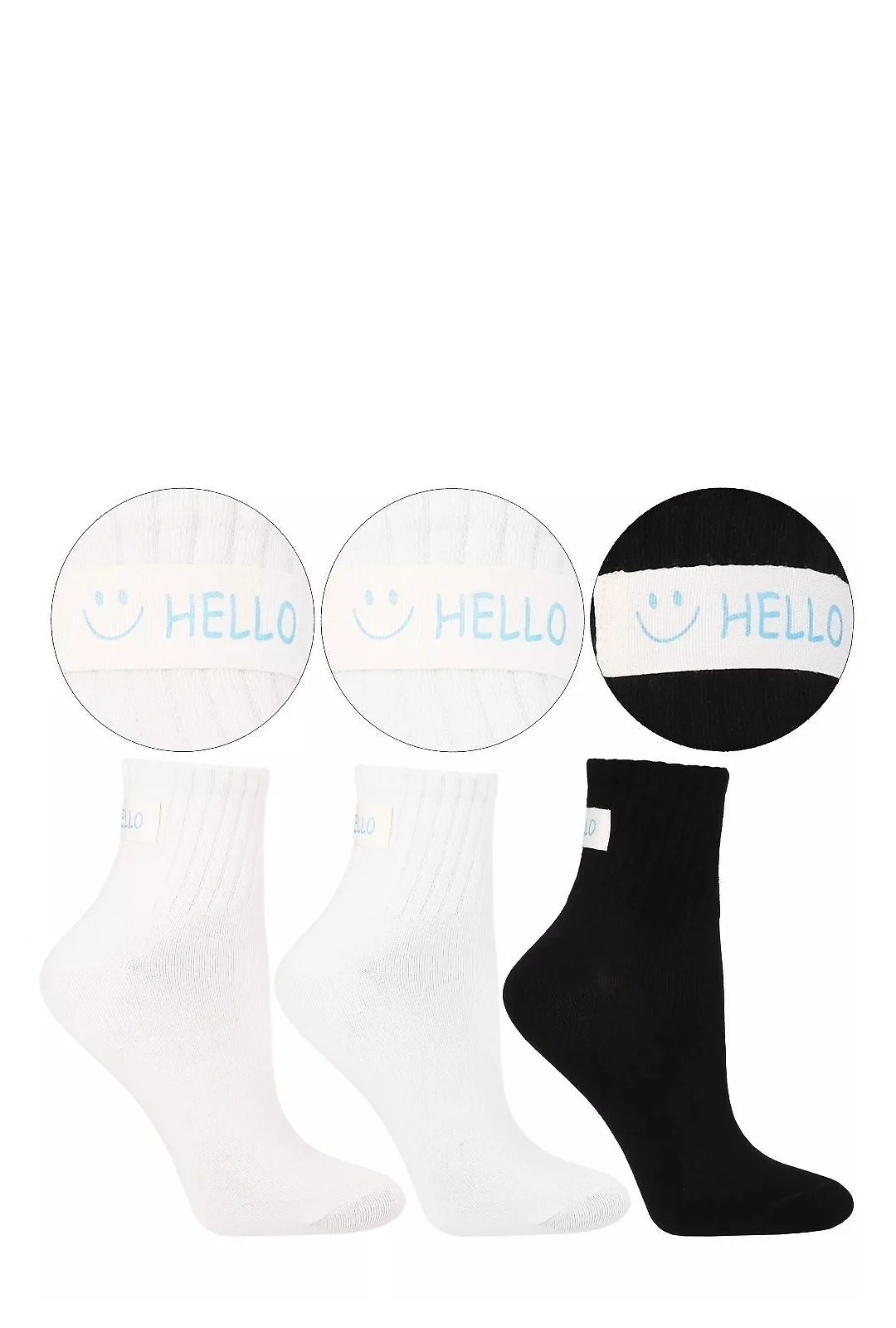 Skarpetki damskie - wykonane z wysokiej jakości bawełny - prążkowana cholewka ozdobiona naszywką z napisem - doskonale sprawdzą się w codziennych stylizacjach - idealnie dopasowują się do stóp - zapewniają wysoki komfort noszenia - dostępne w 3 kolorach: czarny, ecru, beżowy jasny - wybierane losowo Skład: 69% bawełna, 28% poliamid, 3% elastan