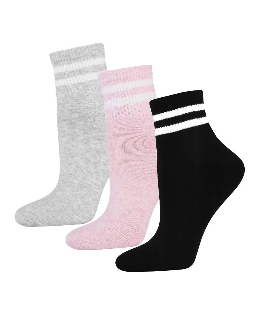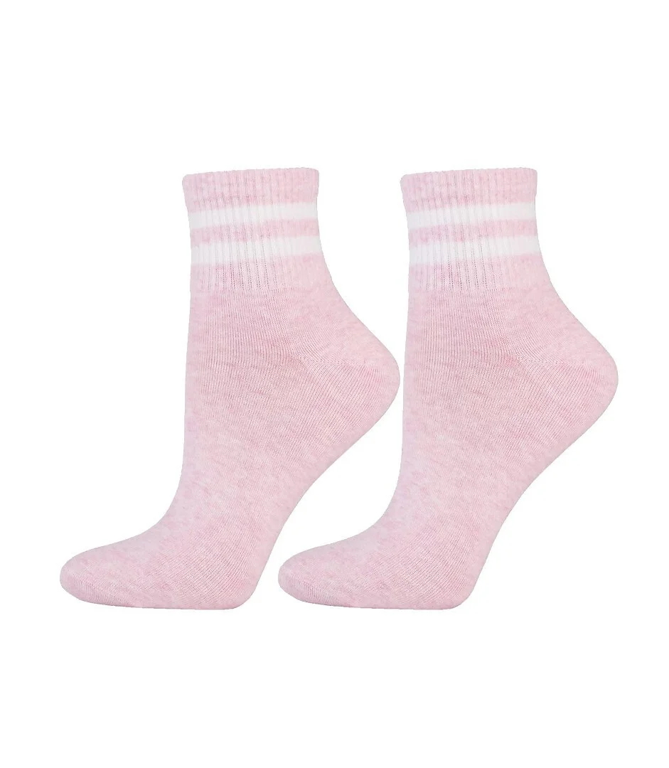 Skarpetki damskie - wykonane z bawełny - cholewka z dwoma paskami - idealnie dopasowują się do stopy - zapewniają wysoki komfort noszenia - dostępne w 3 kolorach: różowy, czarny, szary - wybierane losowo Skład: 65% bawełna, 30% poliester, 5% elastan