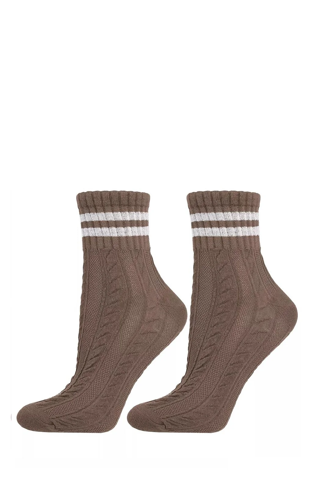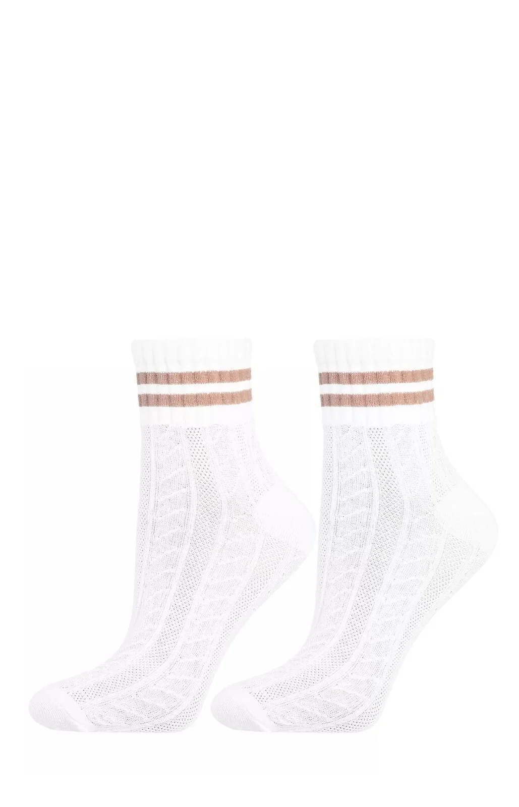 Skarpetki damskie - wykonane z bawełny - żakardowy wzór - cholewka z dwoma paskami - idealnie dopasowują się do stopy - zapewniają wysoki komfort noszenia - dostępne w 3 kolorach: biały, beżowy, brązowy - wybierane losowo Skład: 69% bawełna, 28% poliester, 3% elastan