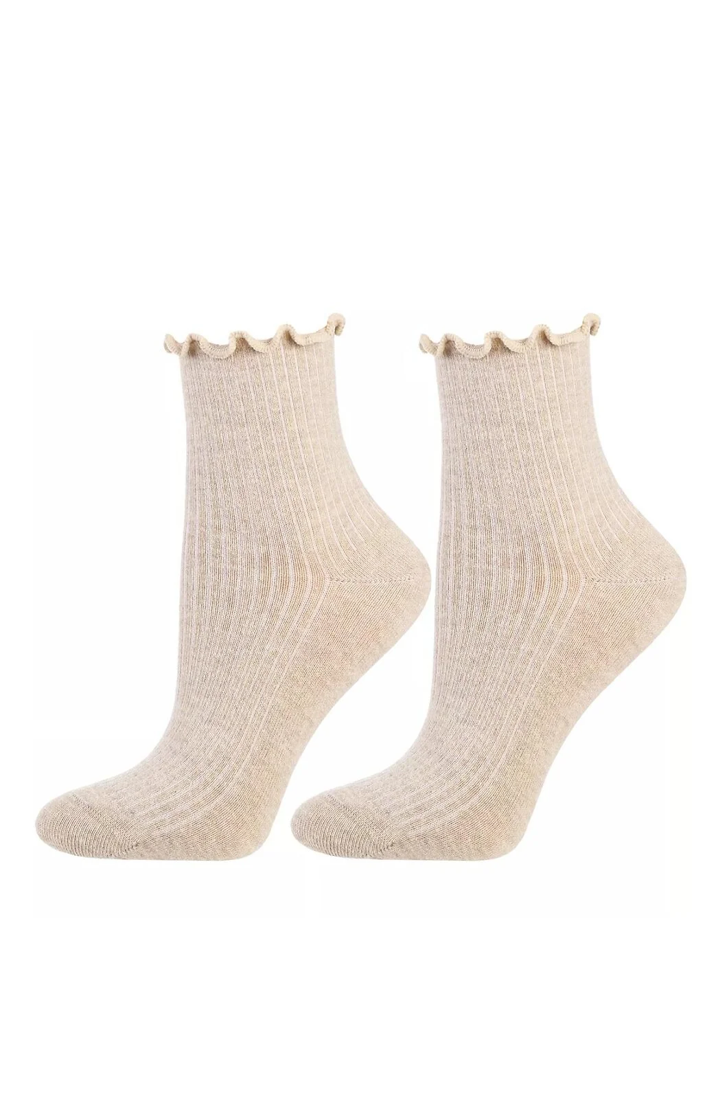 Skarpetki damskie - wykonane z wysokiej jakości bawełny - struktura w drobny prążek - idealnie dopasowują się do stóp - zapewniają wysoki komfort noszenia - dostępne w 3 kolorach: ecru, beżowy, brązowy - wybierane losowo Skład: 78% bawełna, 20% poliamid, 2% elastan