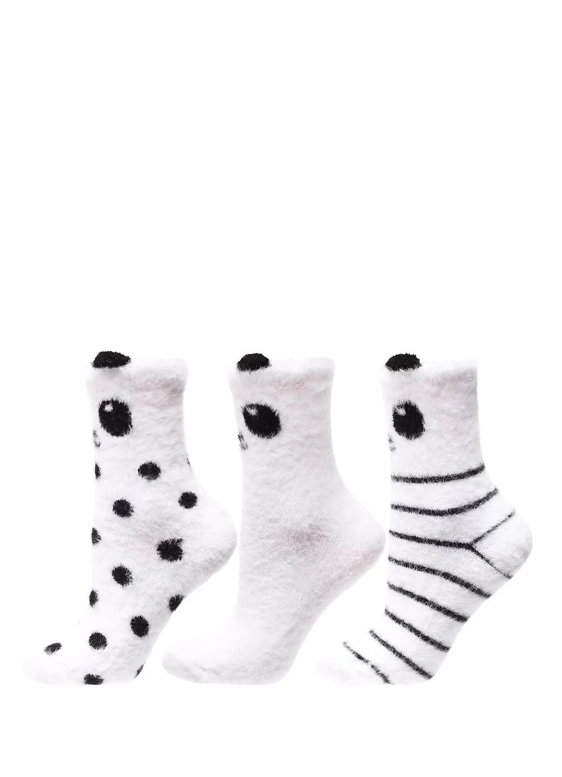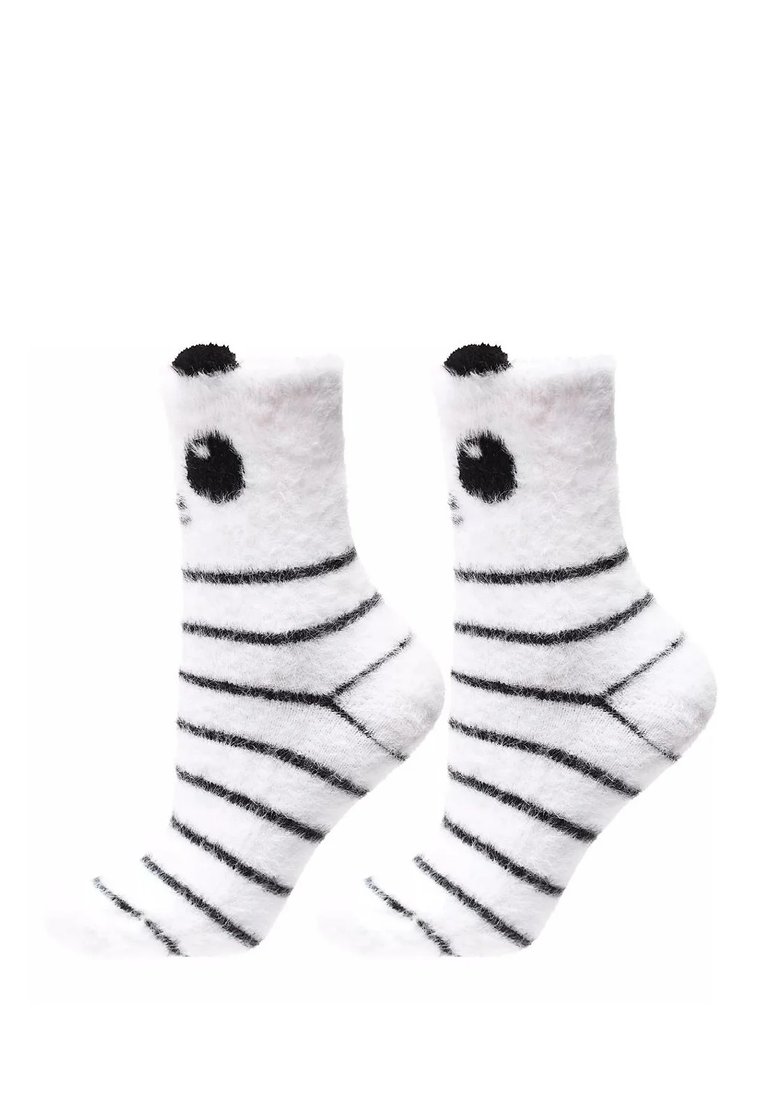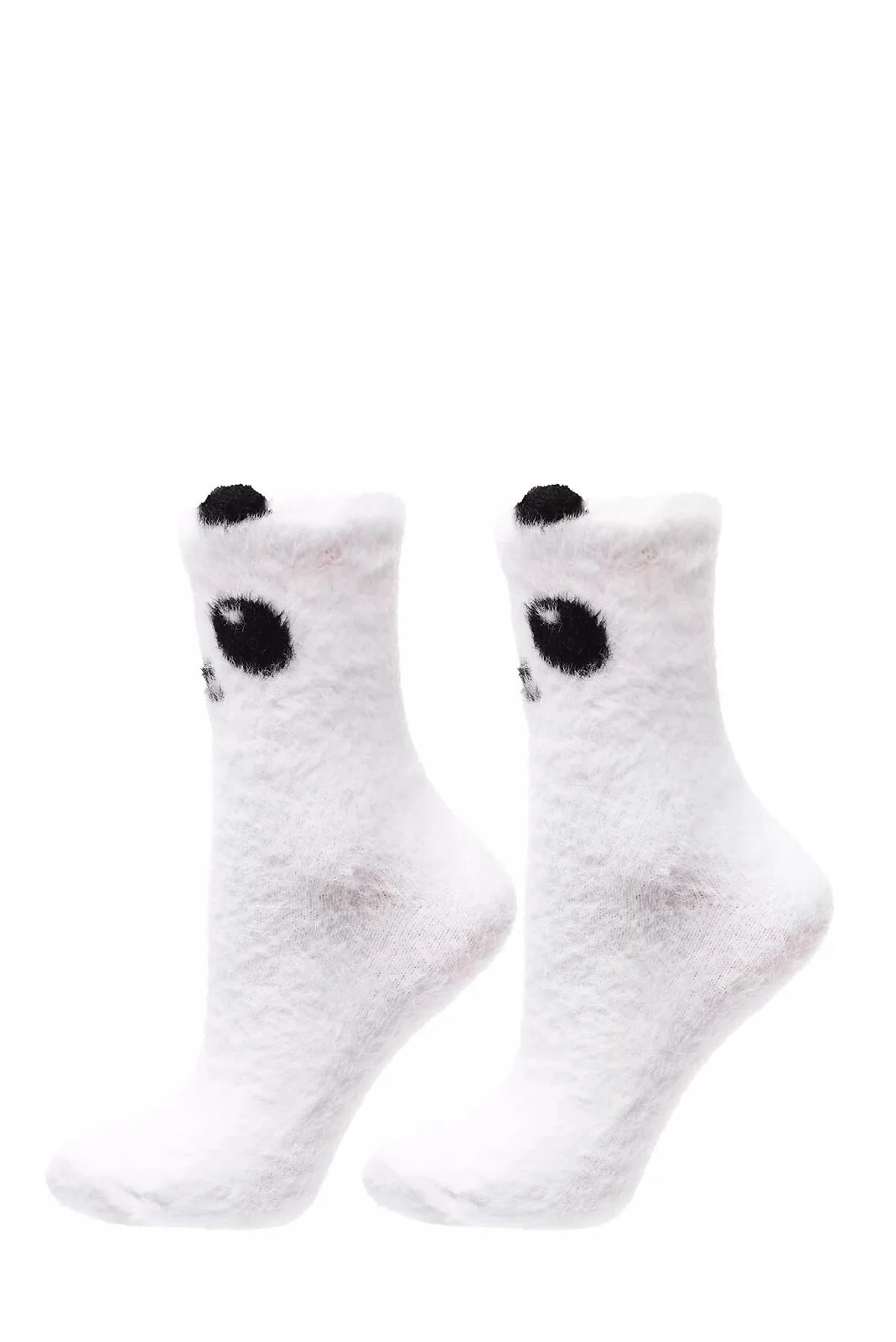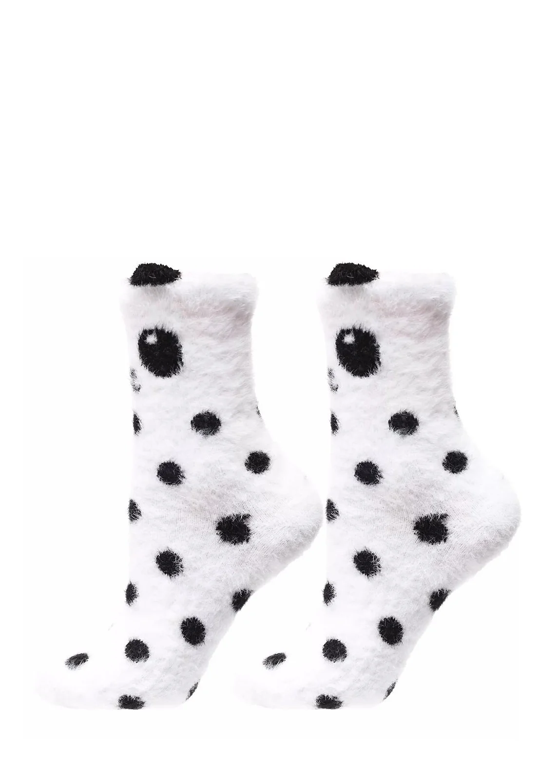 Skarpety damskie - miękka puchata dzianina - ściągacz z ozdobnymi buźkami - wzór w paski, kropki lub gładkie - wygodny ściągacz - wzory wybierane losowo: kropki, paski, gładkie Skład: 89% poliamid, 10% poliester, 1% elastan