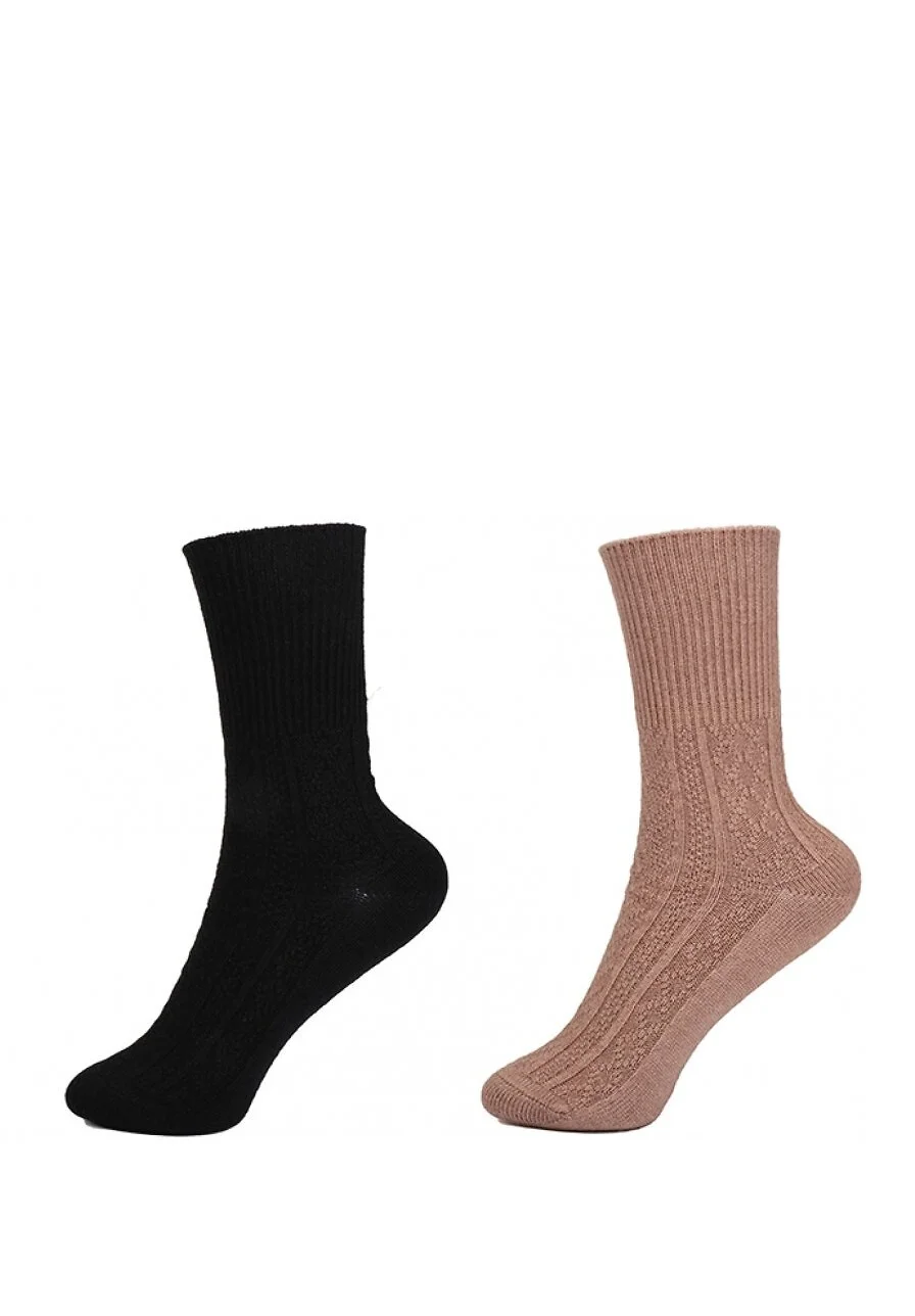 Skarpetki damskie - wysokiej jakości miękka dzianina - efektowny, wypukły wzór - prążkowany ściągacz - doskonale sprawdzą się w codziennych stylizacjach - idealnie dopasowują się do stóp - zapewniają wysoki komfort noszenia - dostępne kolory: mokka, czarny - wybierane losowo Skład: 53% poliester, 27% akryl, 17% poliamid, 3% elastan