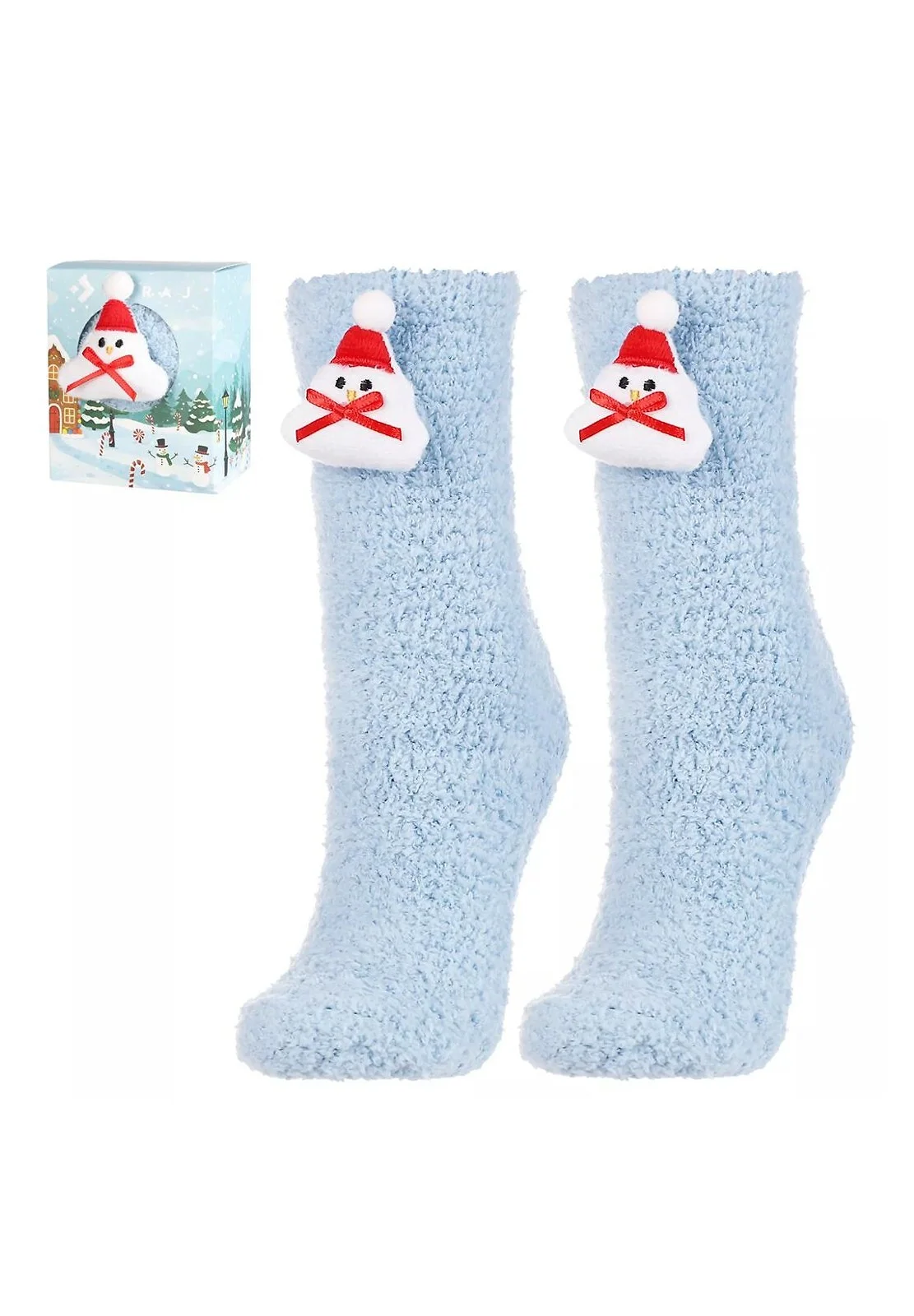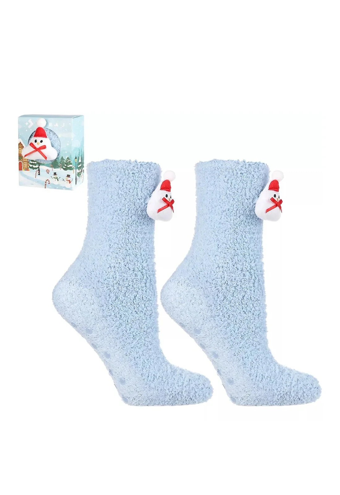 Świąteczne skarpety unisex - miękka, ciepła dzianina - ozdobna aplikacja 3D z bałwankiem - stopa antypoślizgowa z ABS - pakowane w efektowne pudełko - doskonałe na świąteczny prezent   Skład: 97% poliester, 3% elastan