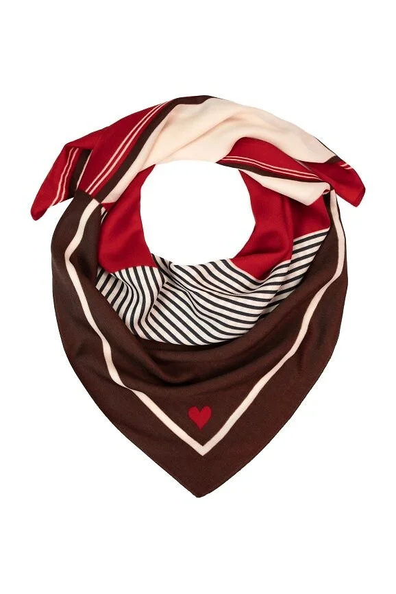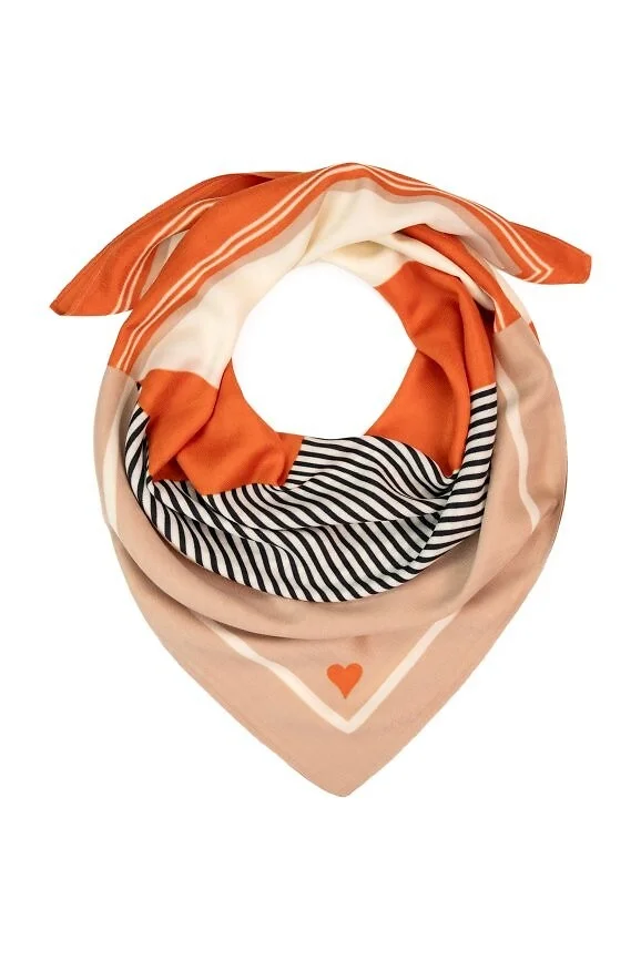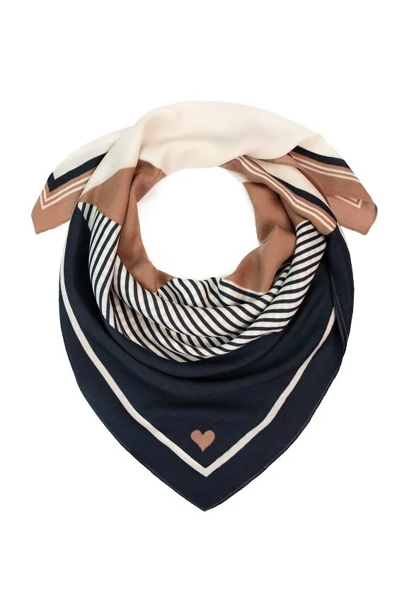 Kwadratowa chusta z motywem pasków - miękka i przyjemna w dotyku tkanina, zapewnia komfort noszenia - subtelny wzór w paski nadaje całości klasycznego wyglądu - rozmiar 85x85 cm   Skład: 100% poliester