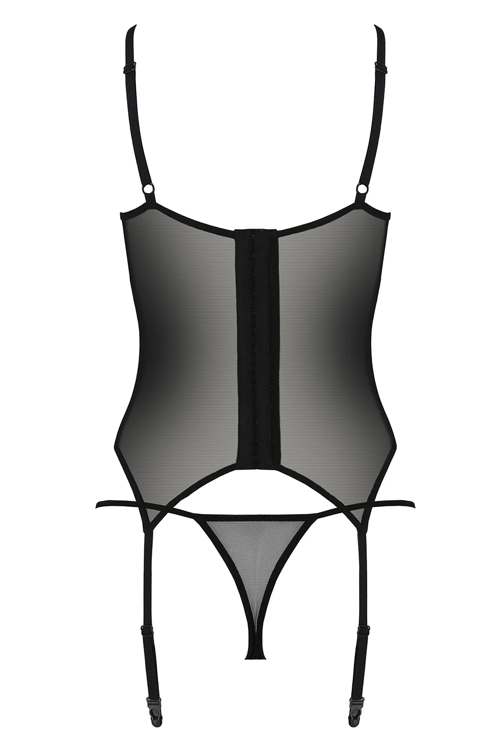 • Gorset marki Passion. Model Varella corset. Produkt został wykonany z 47% poliamid z recyklingu, 43% regenerowany poliamid, 7% regenerowany elastan, 3% lycra. Miejsce zapięcia: tył. Produkt posiada regulowane ramiączka. Gorset zapinany na haftki. Troczki są regulowane. Posiada druty, które podpierają piersi odpowiednio je kształtując. Pas z troczkami. Produkt damski.