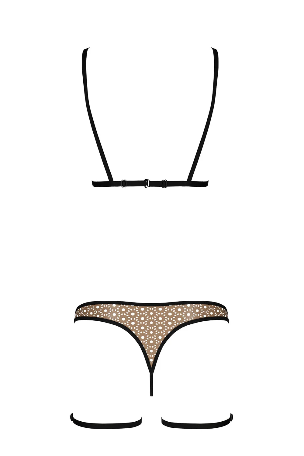 • Nocna marki Passion. Model Gabi set. Produkt został wykonany z 60% poliuretan, 40% poliester. Miejsce zapięcia: tył. Nocna zapinany na haczyk. Produkt posiada regulowane ramiączka. Pas z troczkami. Produkt damski. Troczki są regulowane.