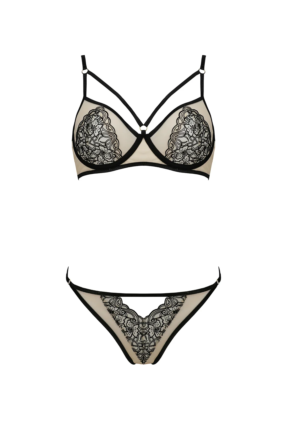 • Nocna marki Passion. Model Loona set. Produkt został wykonany z 60% poliuretan, 40% poliester. Miejsce zapięcia: tył. Nocna zapinany na haftki. Posiada druty, które podpierają piersi odpowiednio je kształtując. Produkt posiada regulowane ramiączka. Produkt damski.
