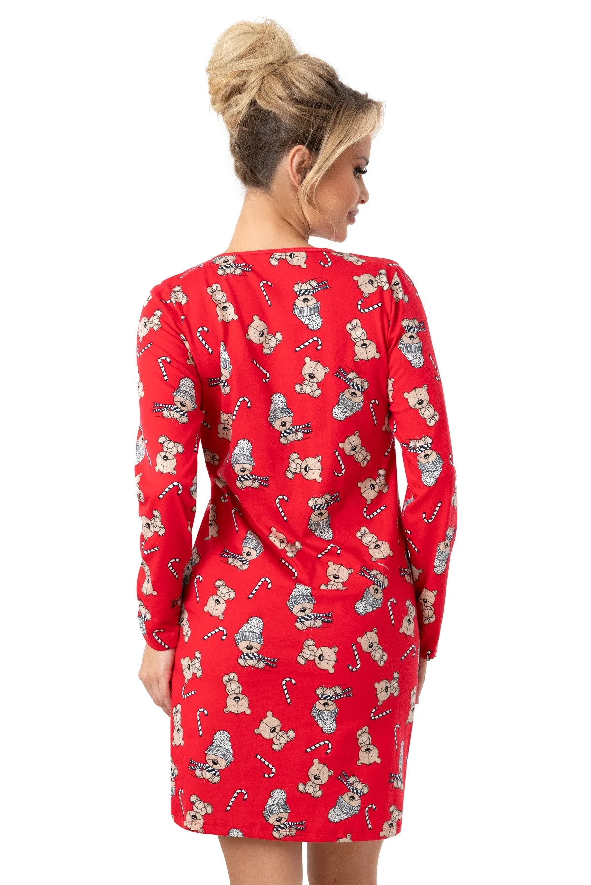 Koszula nocna wykonana z wysokiej jakości, miękkiej bawełny ozdobionej uroczym nadrukiem w misie. Posiada długie rękawy oraz okrągły dekolt. Na wysokości bioder wszyte są praktyczne kieszenie, które zwiększają komfort noszenia.