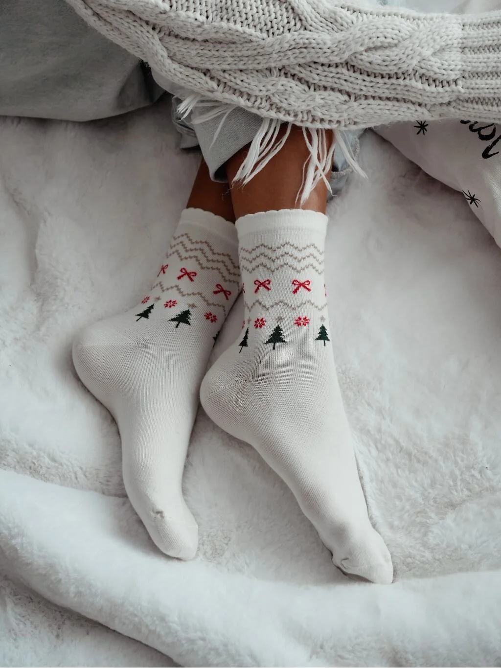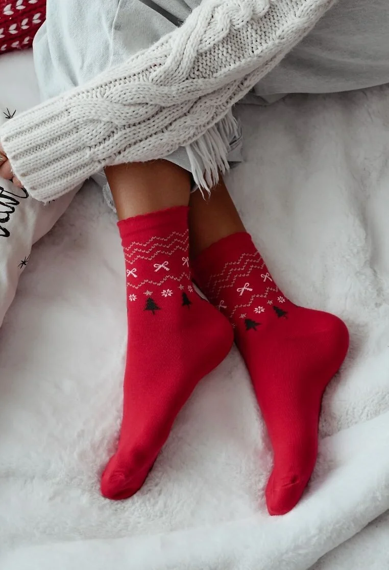 Kolorowe skarpety damskie - wysokiej jakości bawełna - ozdobione świątecznym motywem - idealne na prezent   Skład: 75% bawełna, 20% poliamid, 5% elastan