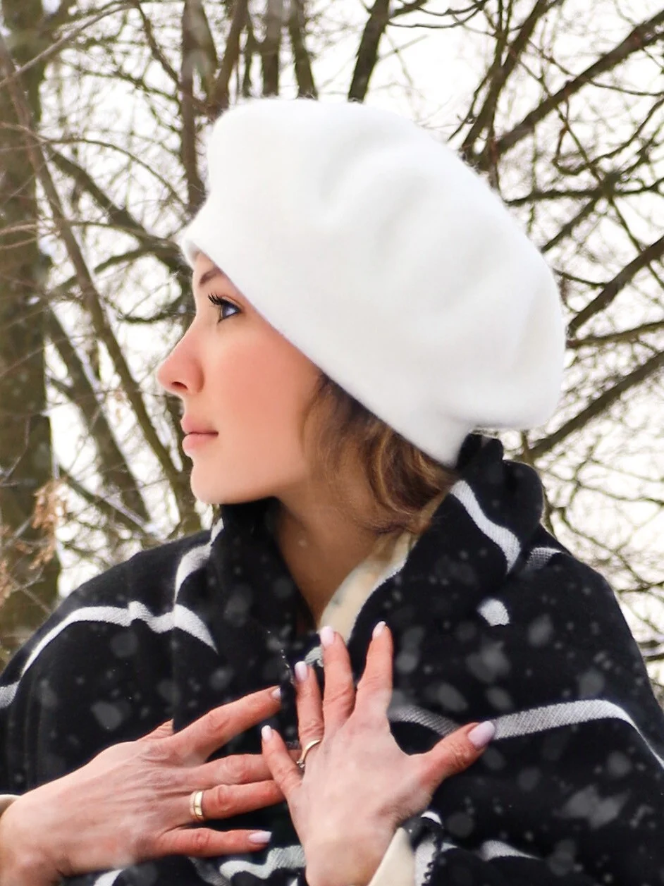 Beret damski - jest świetnym zwieńczeniem każdej eleganckiej stylizacji - wykonany z miękkiej i przyjemnej w dotyku dzianiny - podwójny materiał   Skład: 42% akryl, 30% poliester, 28% poliamid