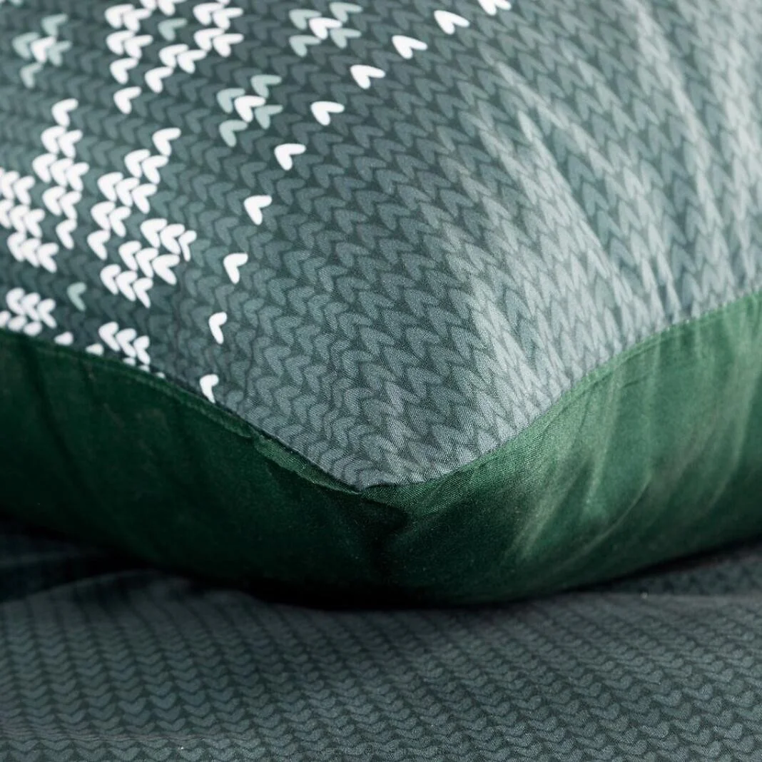 Komplet pościeli - delikatna tkanina z satynowym połyskiem - zimowy wzór a'la sweterek - poszwa na kołdrę 160x200 - dwie poszewki na poduszkę 70 x 80 - poszwa i poszewki zapinane na suwak - daje poczucie komfortu podczas snu - szybko schnie i mało się gniecie - świetny pomysł na prezent "pod choinkę".    Skład: 100% poliester