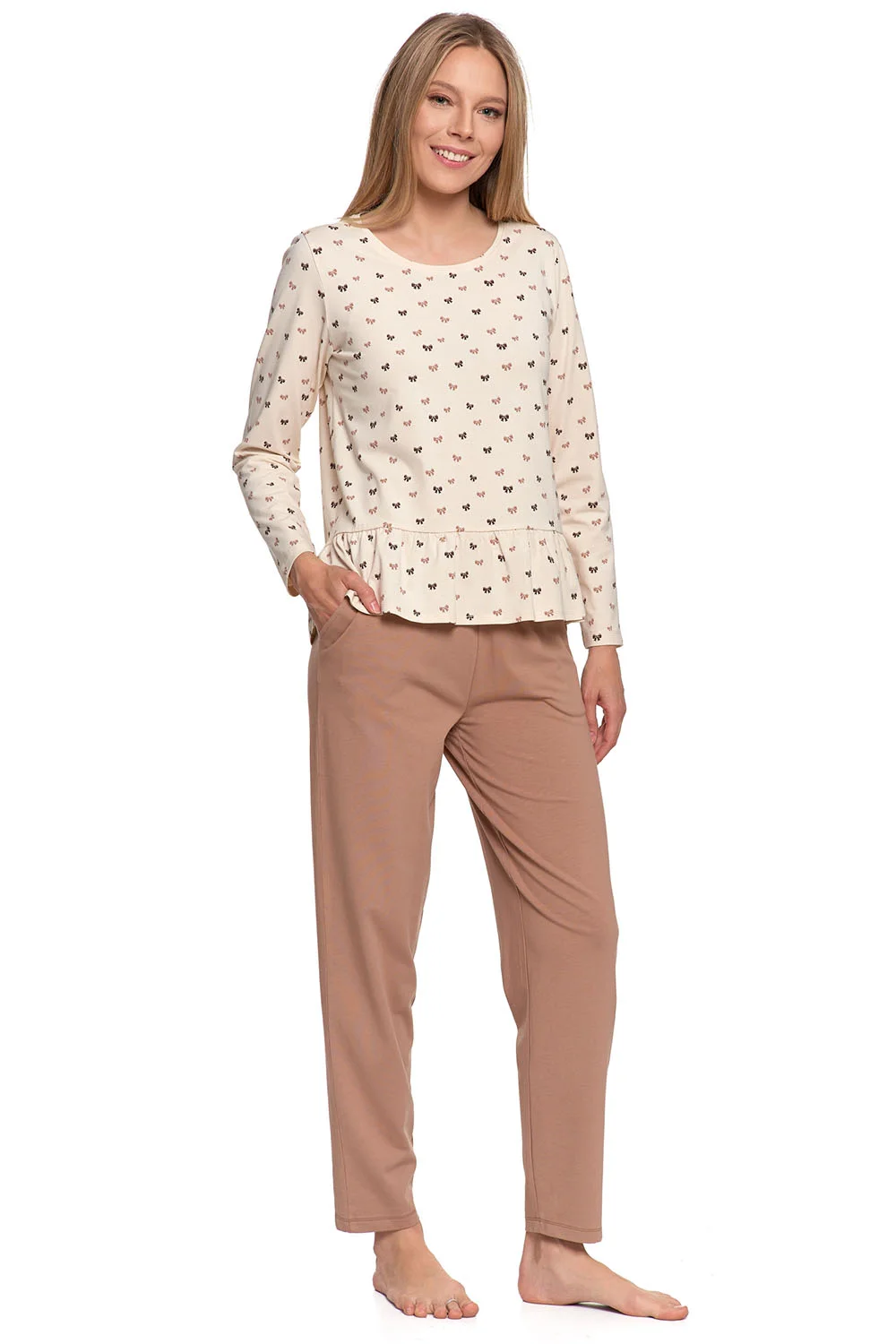 • Nocna marki Moraj. Model PDD4100-012. Produkt został wykonany z 95% bawełna, 5% elastan. Długość: długie. Długość rękawa: długi rękaw. Posiada kieszenie. Produkt damski. Rodzaj dekoltu: okrągły.