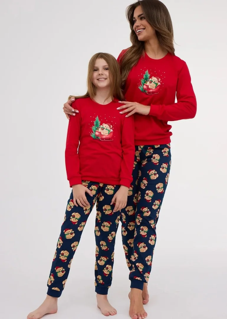 • spodnie w granatową, świąteczną grafikę z misiami,