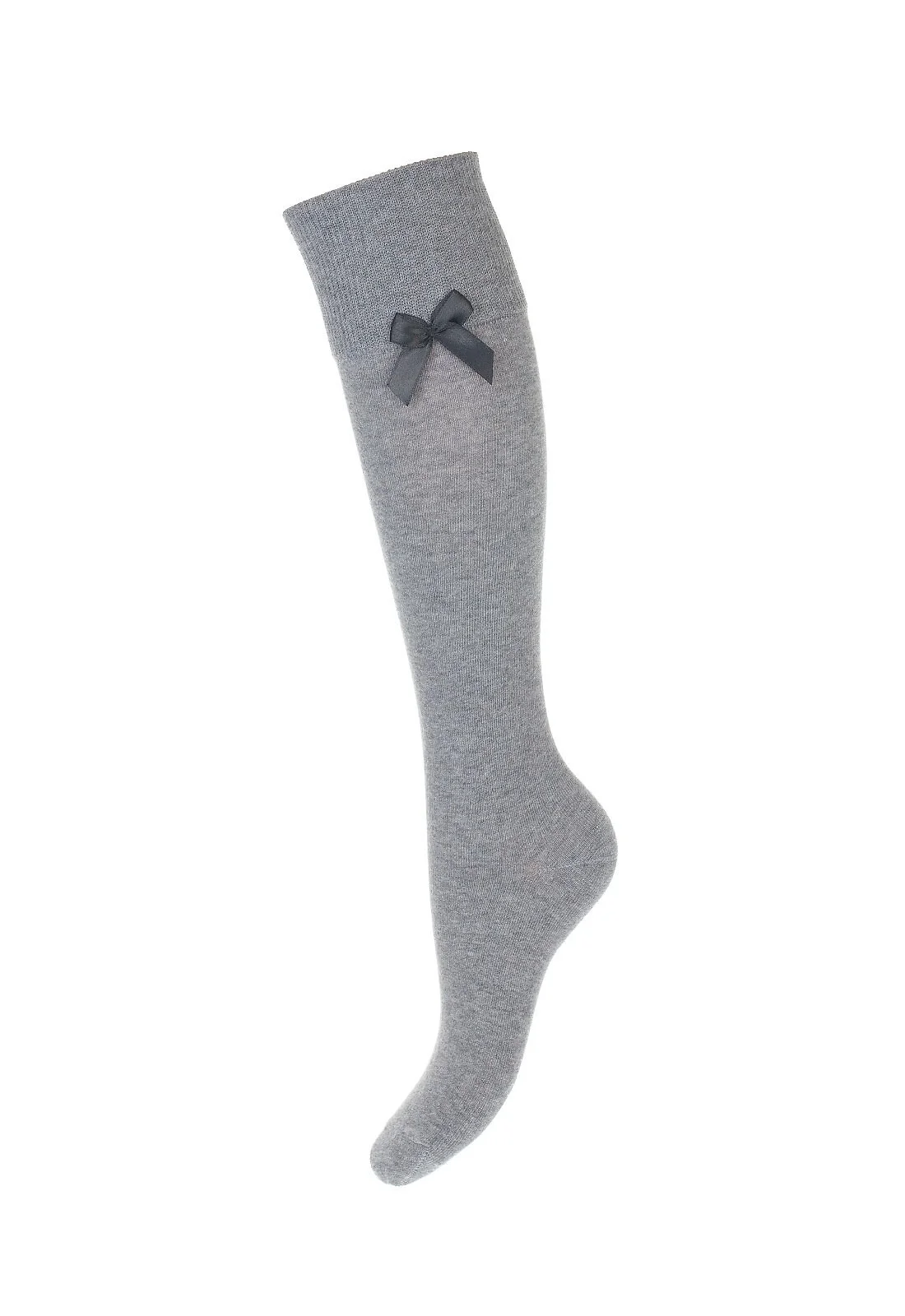 Podkolanówki damskie - bawełniane z dodatkiem włókien elastycznych - ozdobione satynowymi kokardkami   Skład: 75% bawełna, 20% poliamid, 5% elastan