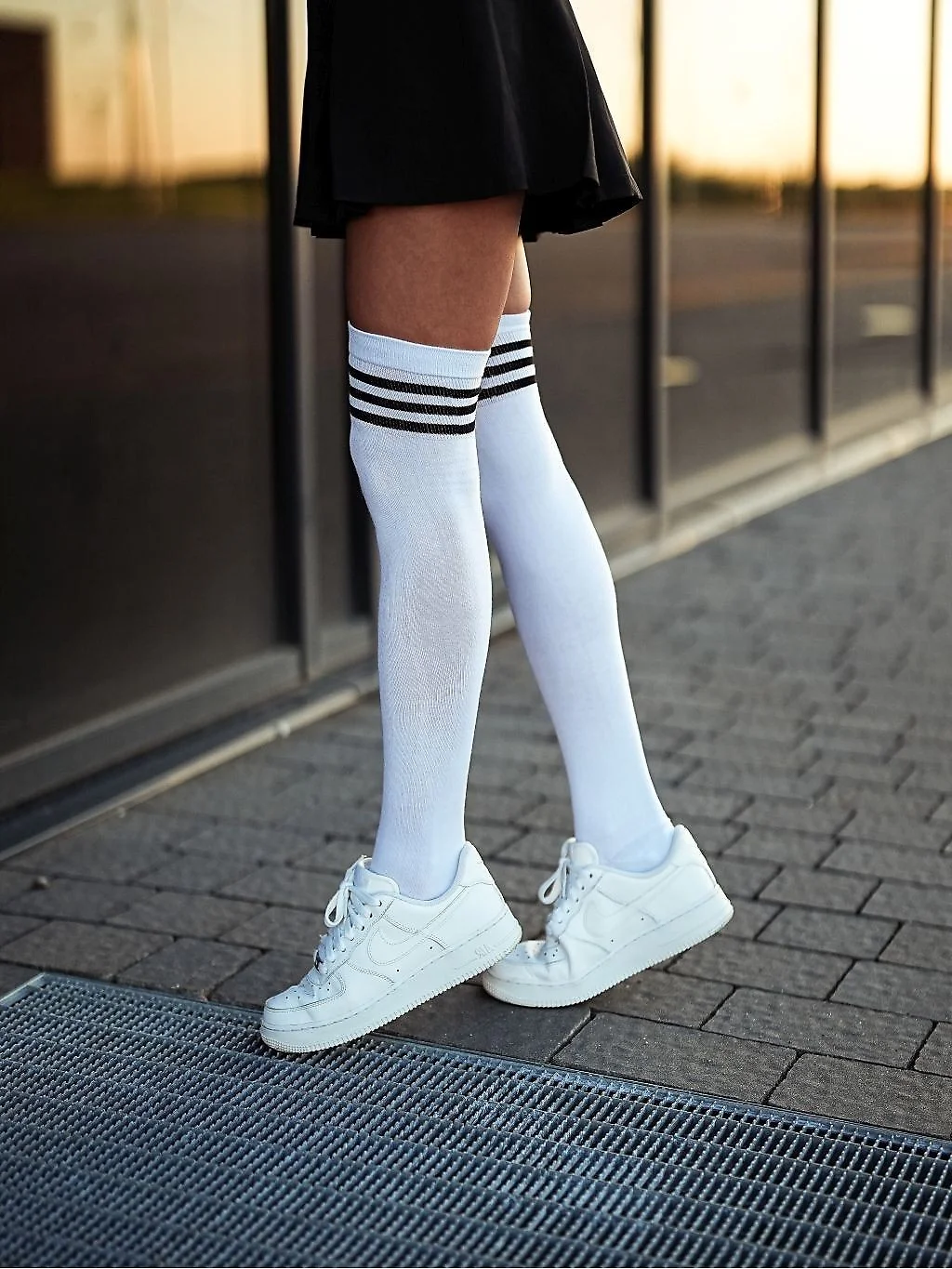Zakolanówki damskie - płaskie szwy - nieuciskający ściągacz zapewniają wygodę i komfort noszenia - ściągacz ozdobiony kolorowymi paskami   Skład: 75% bawełna, 20% poliamid, 5% elastan
